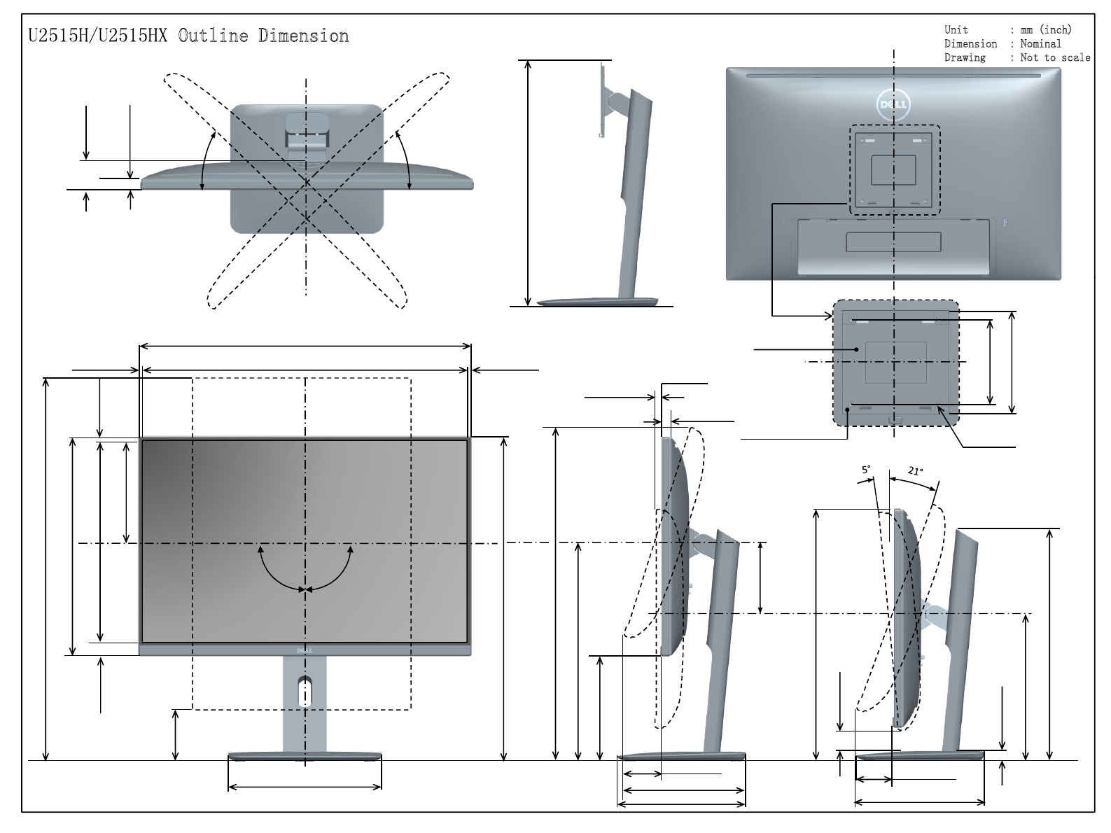 User Manual: Dell dell-u2515h-monitor - Dell UltraSharp U2515H Monitor Outline Drawing