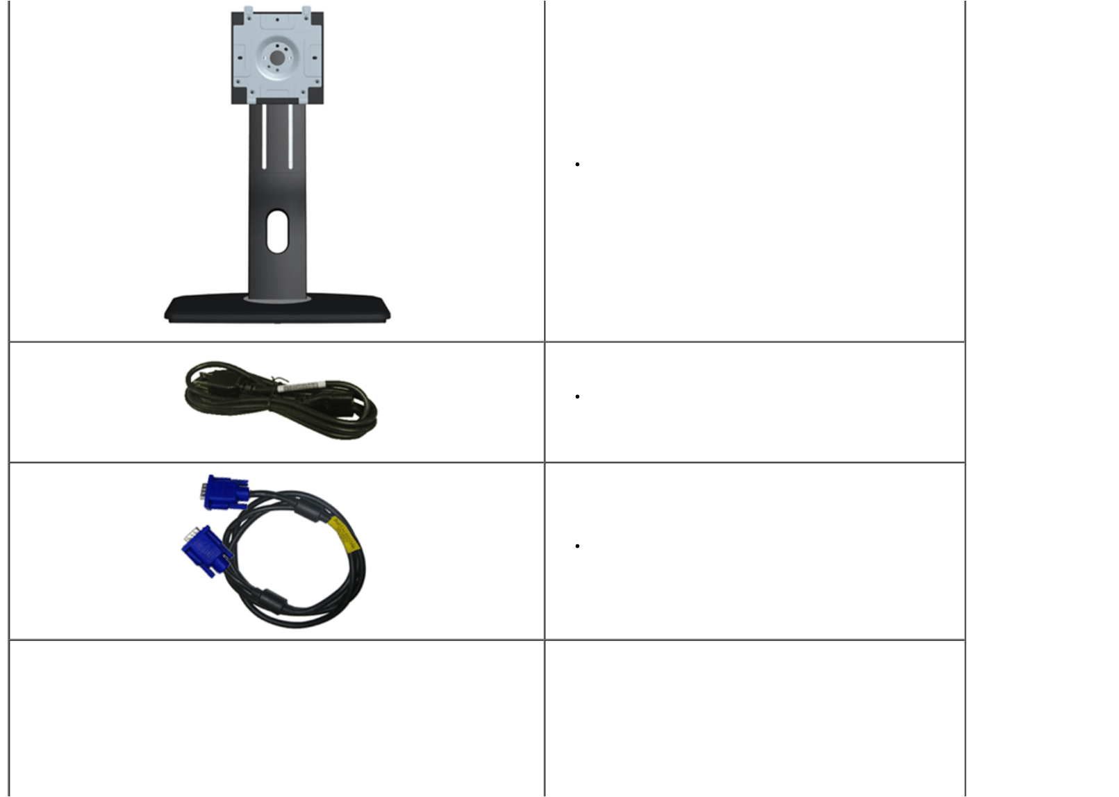 Váš monitor je dodáván včetně níže uvedených součástí. Zkontrolujte, zda jste obdrželi všechny součásti a pokud něco chybí, kontaktujte Dell.