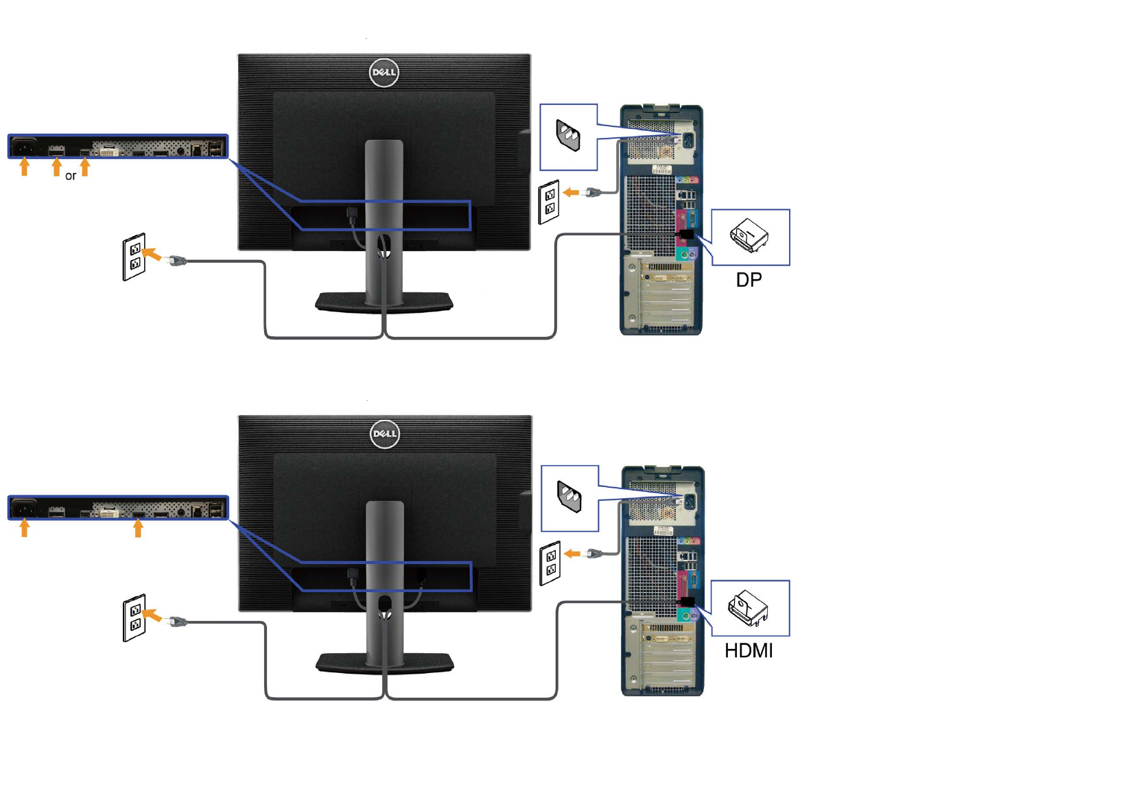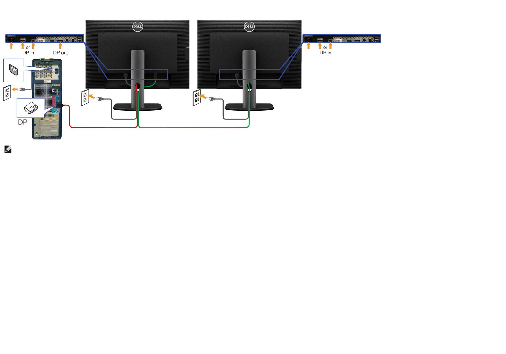 ■ 支援 DVI-D、DisplayPort、Mini DisplayPort、HDMI、DP1.1a、DP 1.2 MST(又稱 DP Daisy Chain)與 HBR2(原廠預設值為 DP1.1a。若要啟用 MST 和 HBR2,請參閱「連接螢幕供 DP MST 功能使用」小節