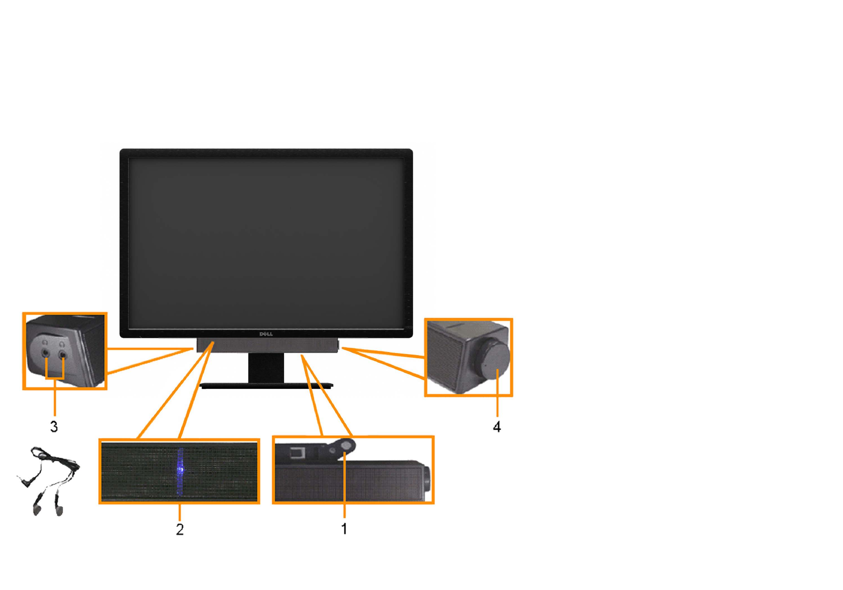 7Dell Soundbar 安裝托架 用以連接選購的 Dell Soundbar。