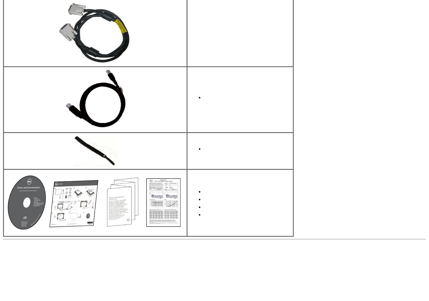■ 軟體和說明文件光碟片內含:資訊檔(INF)、影像顏色比對檔(ICM)、Dell Display Manager軟體應用、 色彩校準軟體及產品說明文件。