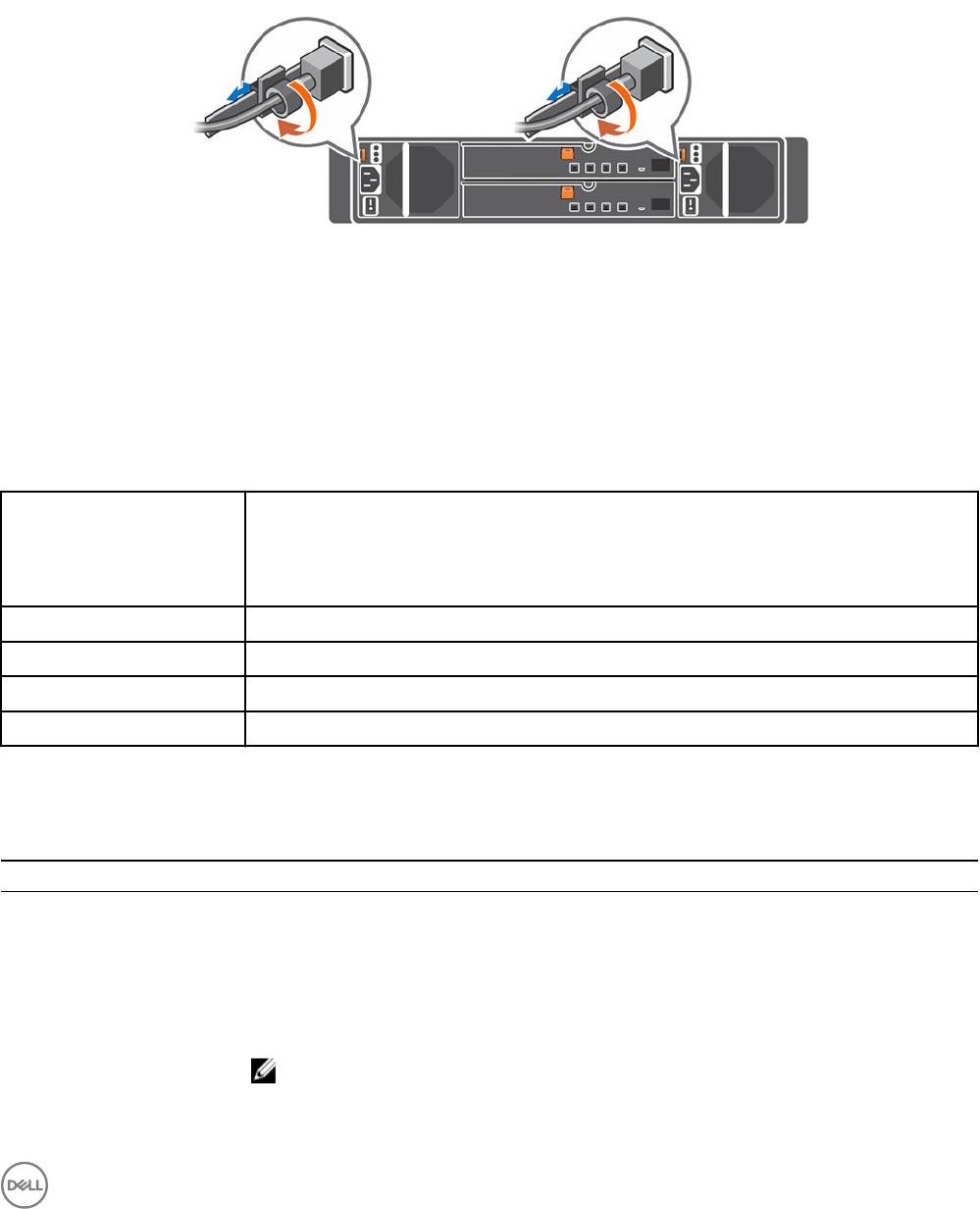 3. Secure each power cable to the expansion enclosure chassis using the strain relief fasteners.