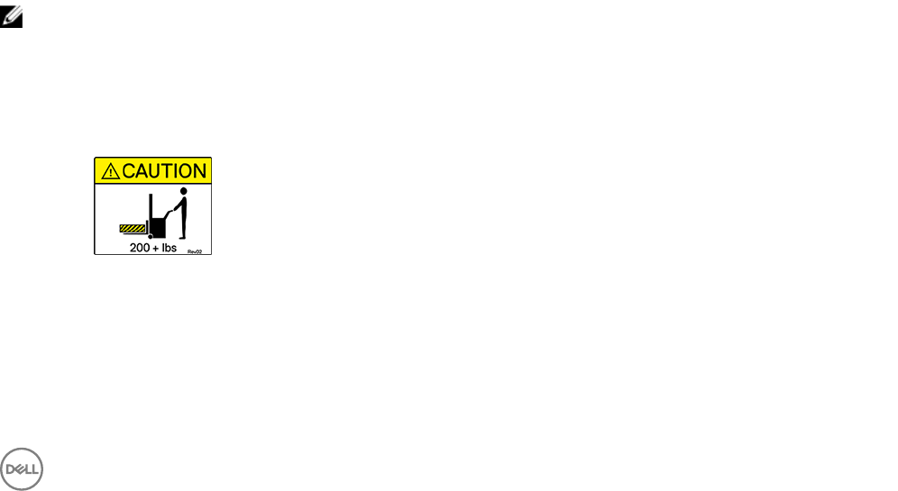 • Dell συνιστά η εγκατάσταση του Κουτί επέκτασης SC460 σε rack να πραγματοποιείται μόνο από άτομα που έχουν εμπειρία