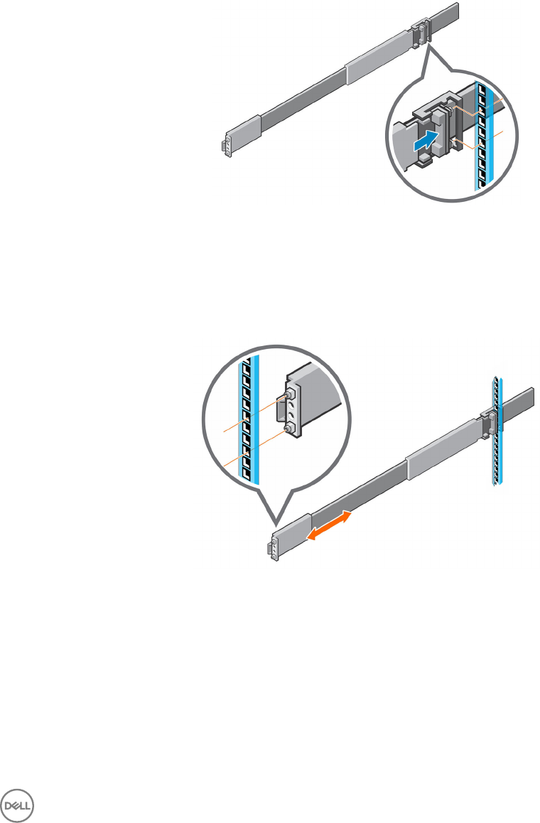 c. Από το μπροστινό μέρος του rack, προεκτείνετε τις ράγες του rack περίπου κατά 5 έως 8 εκατοστά (2 έως 3 ίντσες) και