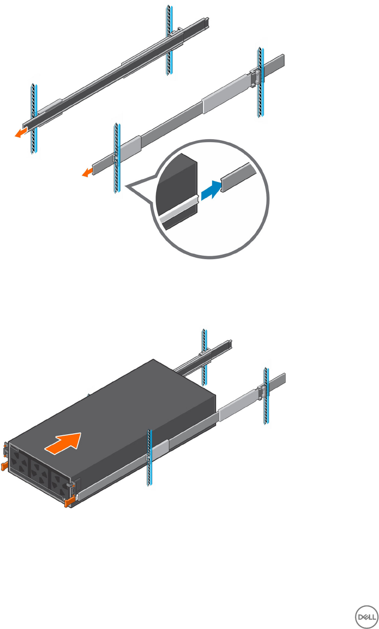 d. Σύρετε τις ράγες του rack πάνω από τις ράγες του περιβλήματος του κουτί επέκτασης.