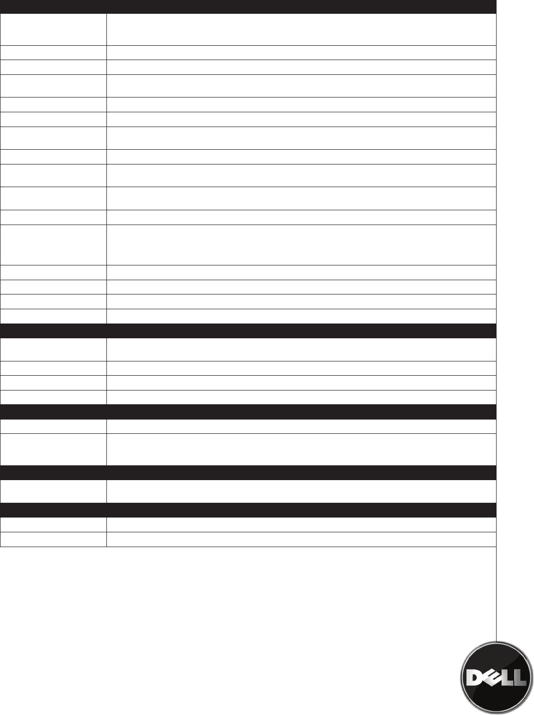 Optional Speakers Internal chassis speaker; Dell two- and three-piece stereo system; Dell sound bar for all flat-panel displays