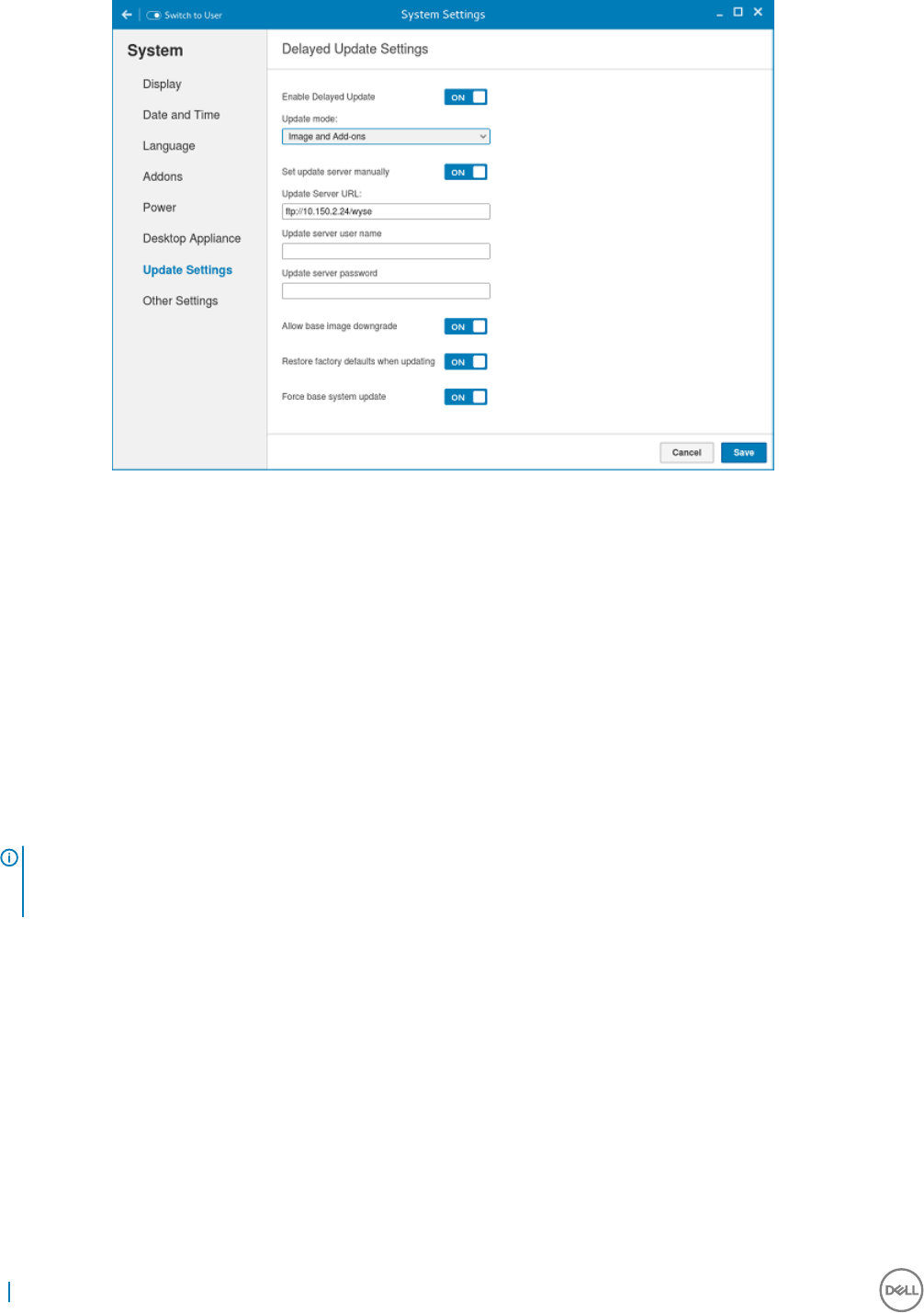 of DelayedUpdate.URL. For example, if the platform type is Wyse 7020, then the delayed update URL will be set to /…./Z50Q/….