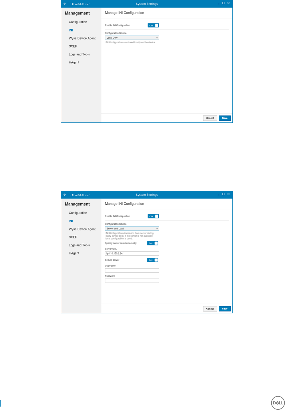 • INI upgrades using FTP, HTTP, or HTTPS on Wyse 5020 (SP3 only), Wyse 7020 (SP3 only), and previous versions of ThinLinux on