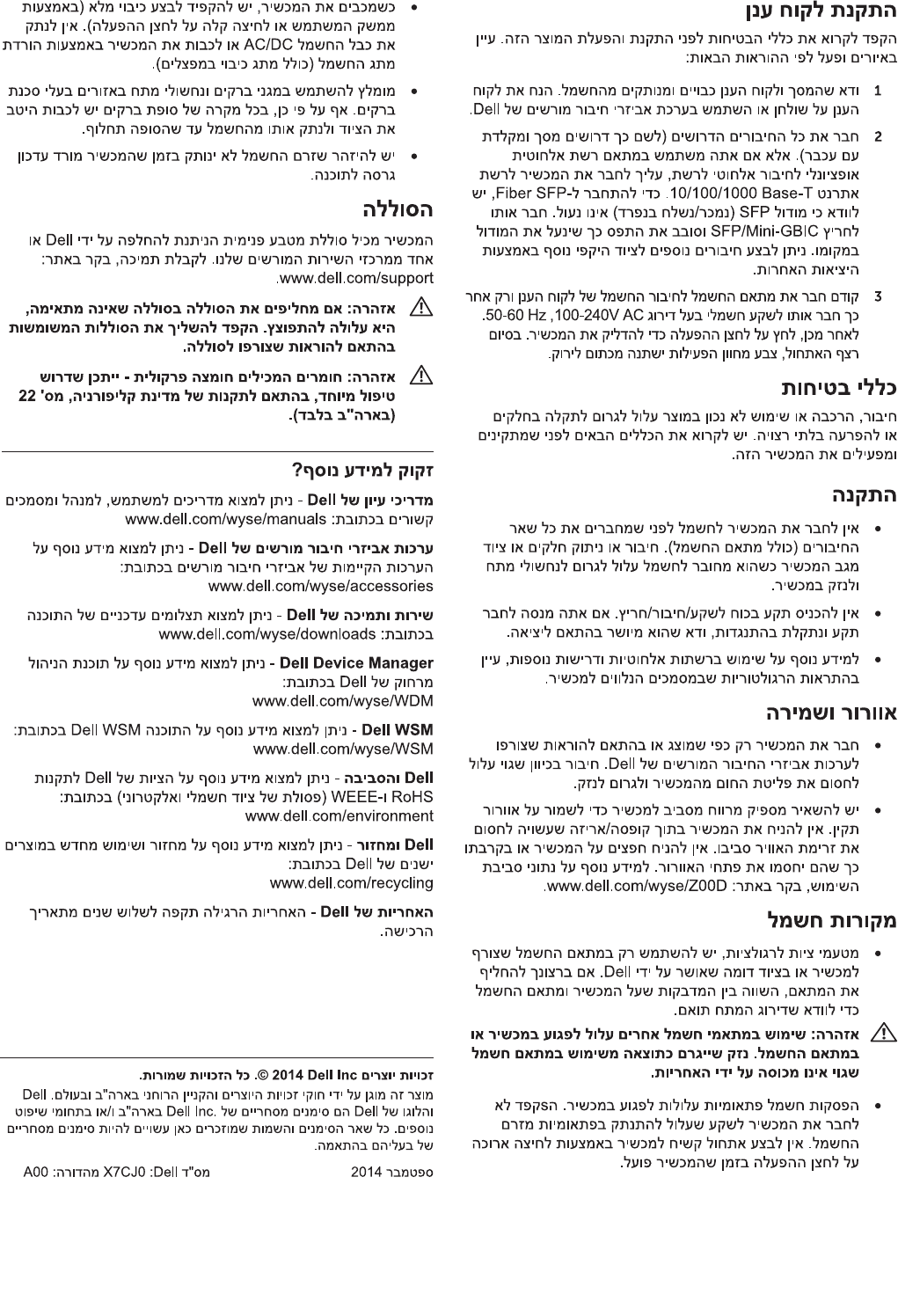 Eylül 2014 Dell P/N: X7CJ0 Rev. A00