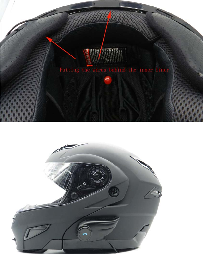 3.Putting the wires behind the inner liner of the helmet.