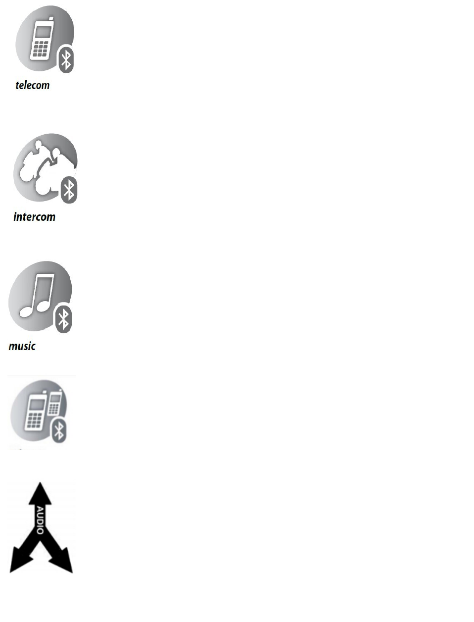 Bluetooth Profile HSP, HFP, A2DP, AVRCP, INTERCOM