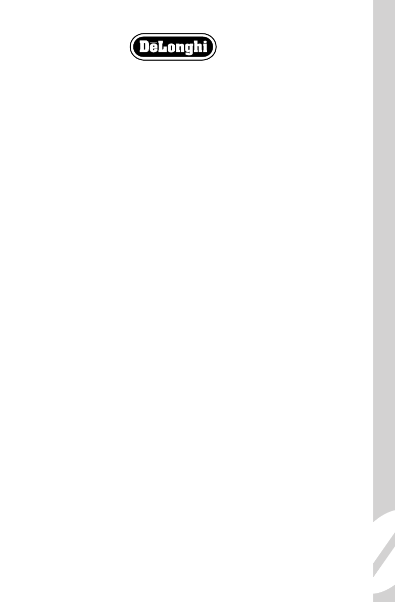 Please refer to the back page of the manual for De’Longhi addresses.