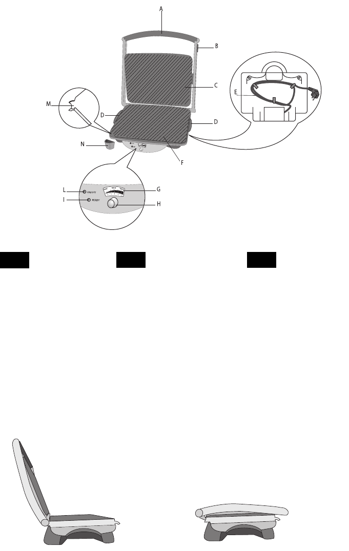 - When the appliance has reached the required temperature, the "READY" indicator light (I) will come on.