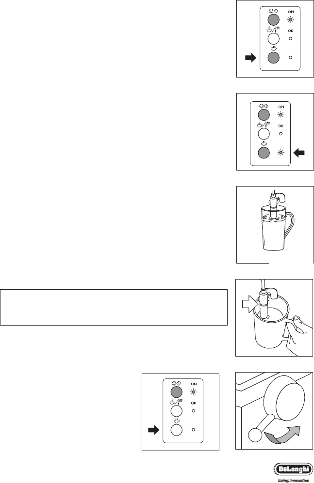 4. Empty the cup, wait until the “OK” pilot light comes on again
