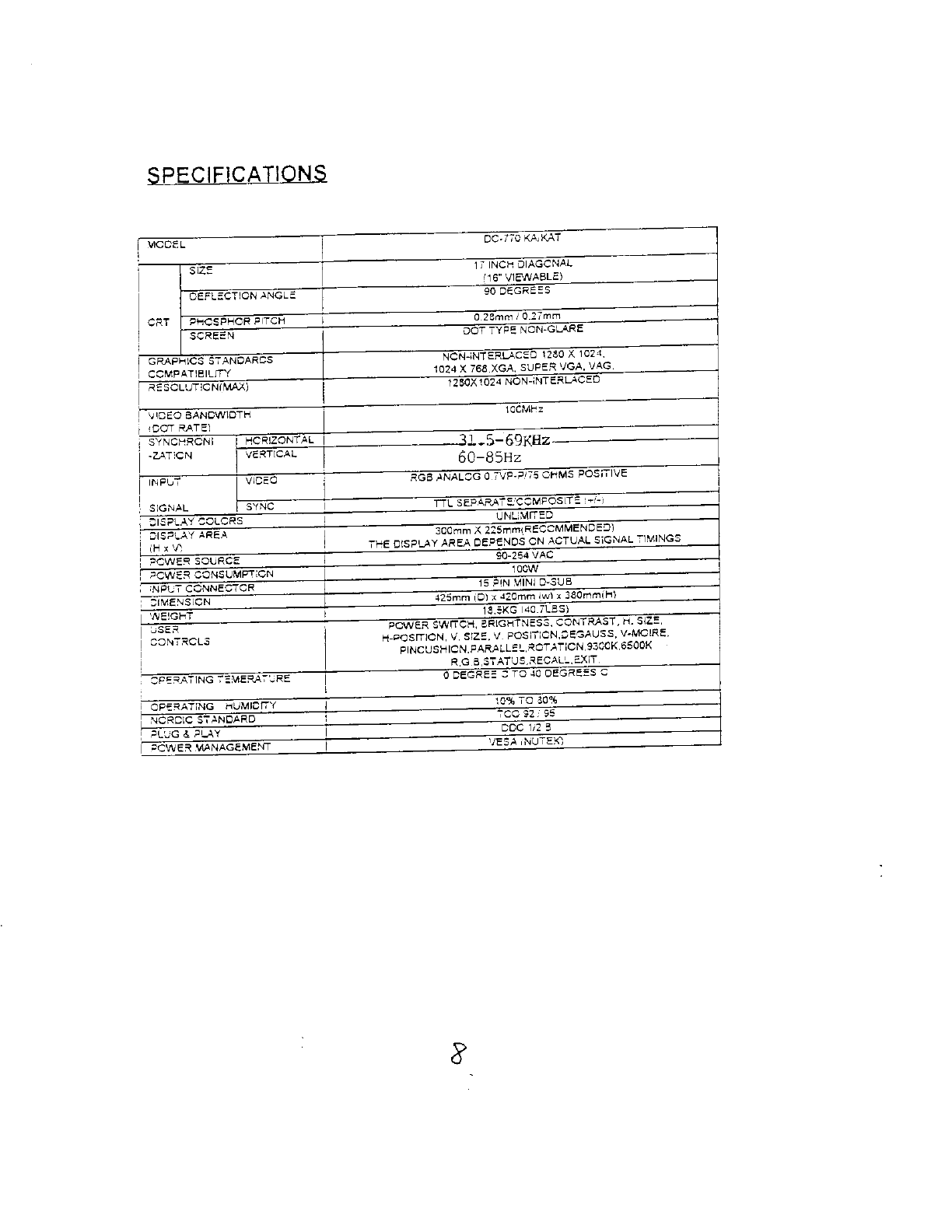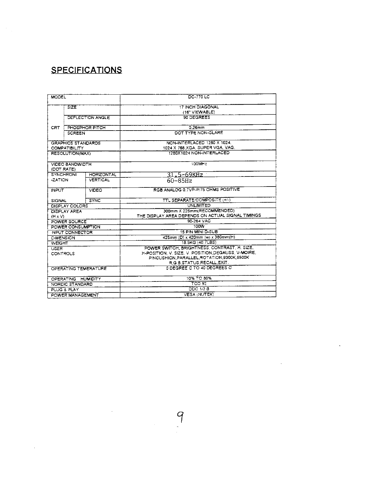 Delta Electronics orporated DC-770 Color Monitor User Manual 44253