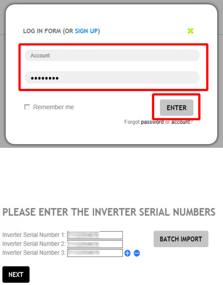 Step 3. Keying your inverter serial number in this page. You can press “+” to