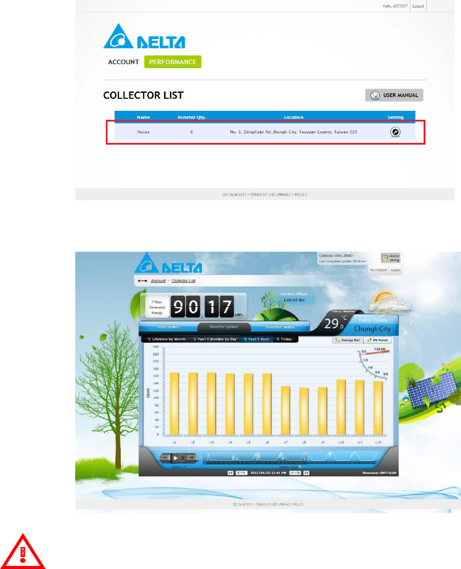 power lines and forwards that data to the Delta Solar EMS via the Internet for