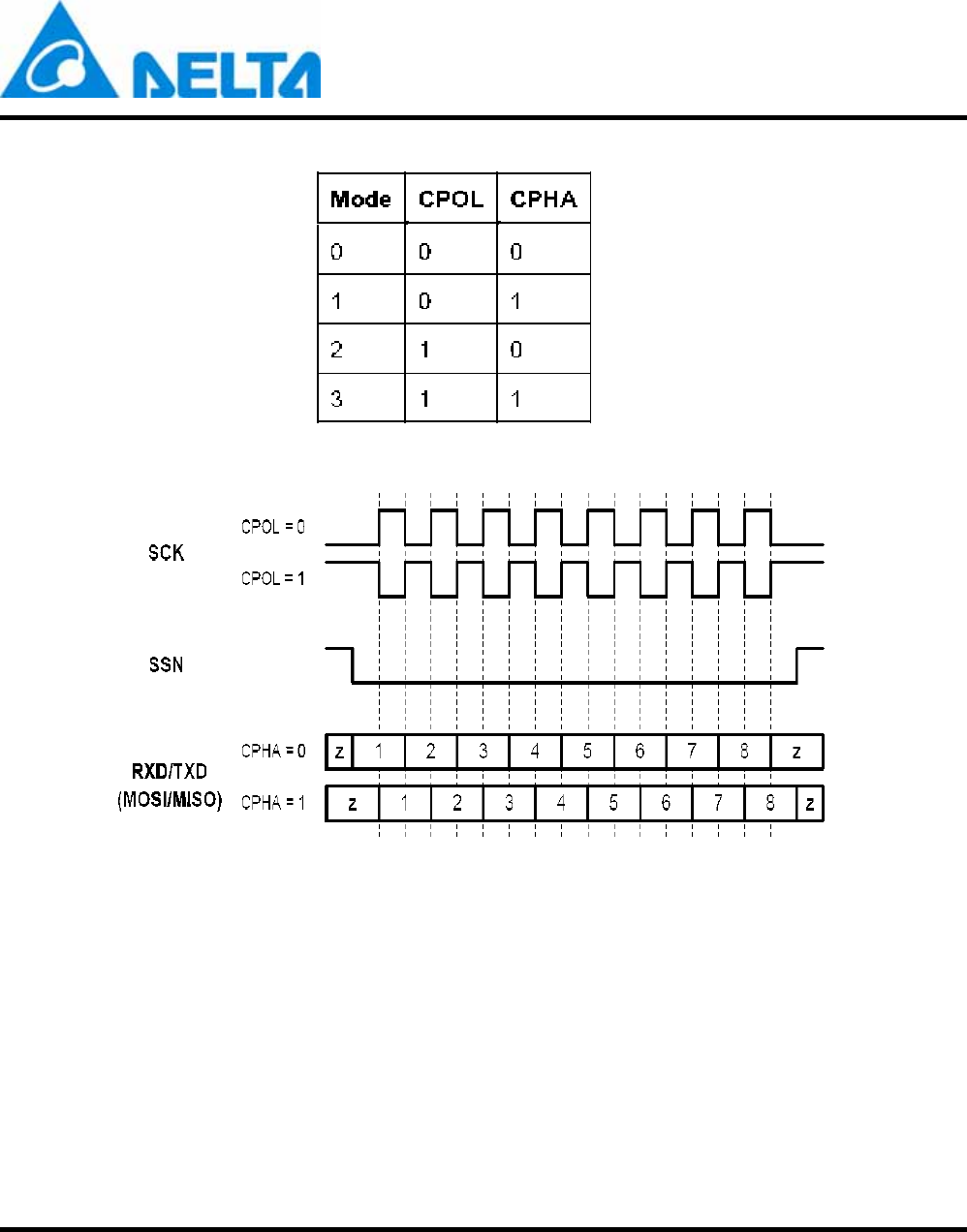 The SPI Slave interface supports four standard modes as determined by the Clock Polarity (CPOL) and