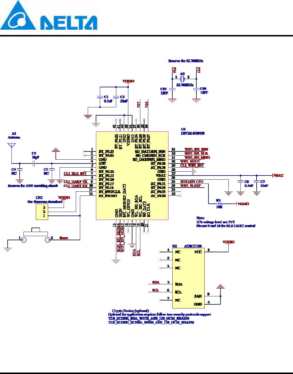 Delta Electronics Incorporated IEEE 802.11b/g/n Wireless LAN Plus Bluetooth Low Energy System On Chip Combo Module.