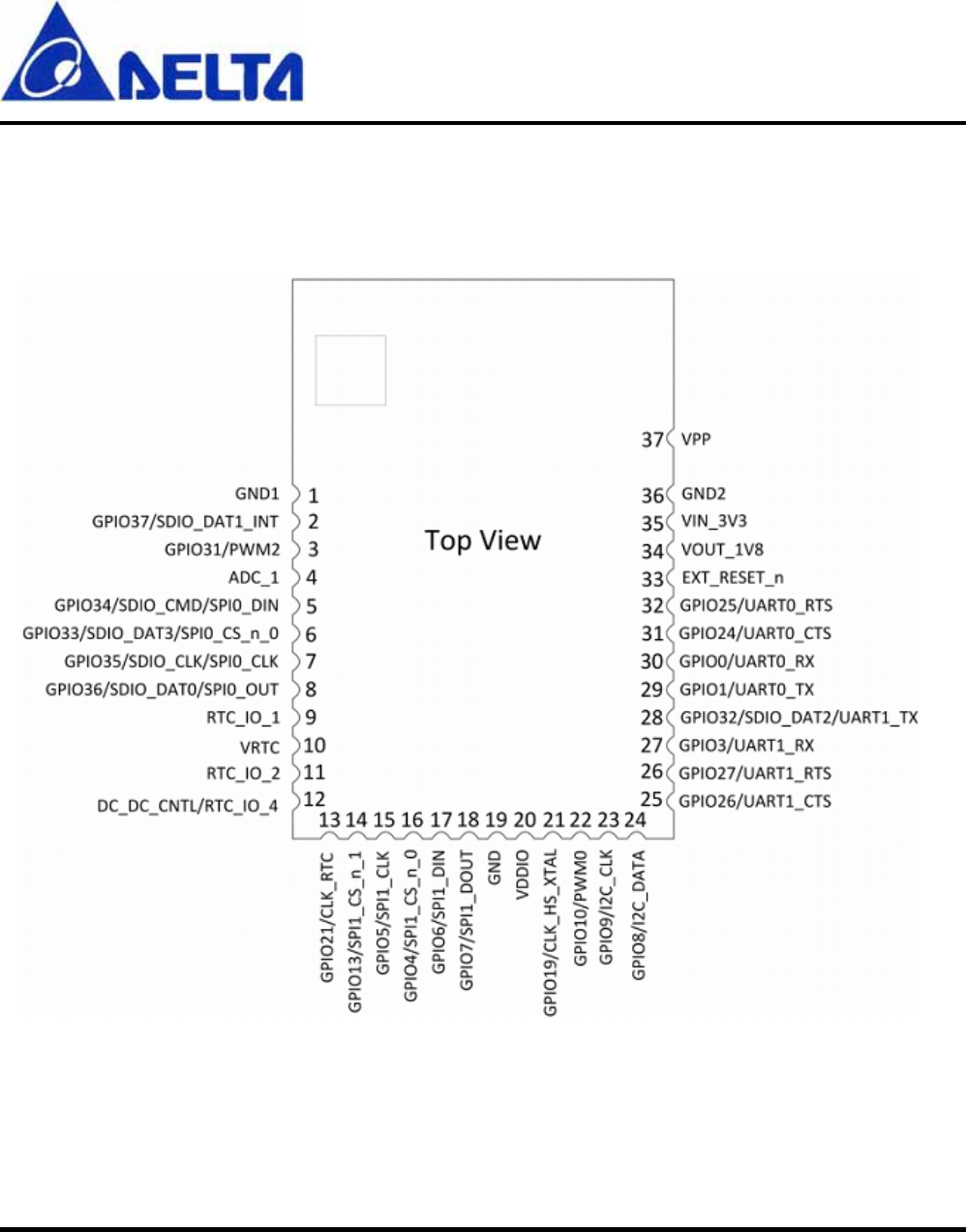 DFWM-GIB0x Device Pin-out Diagram (Module top view)