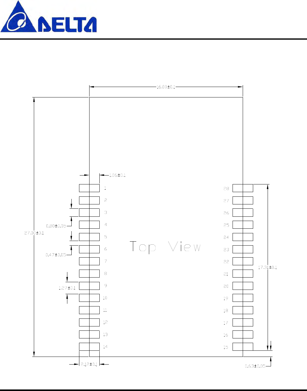 DFZM-E82xx 27 mm by 16 mm by 3.3 mm (Length * Width * Height) 28-pin Dual Flat pack PCB