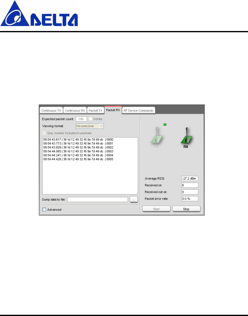 on one of the devices and 'Packet RX' on the other. Press start on the 'Packet RX' device