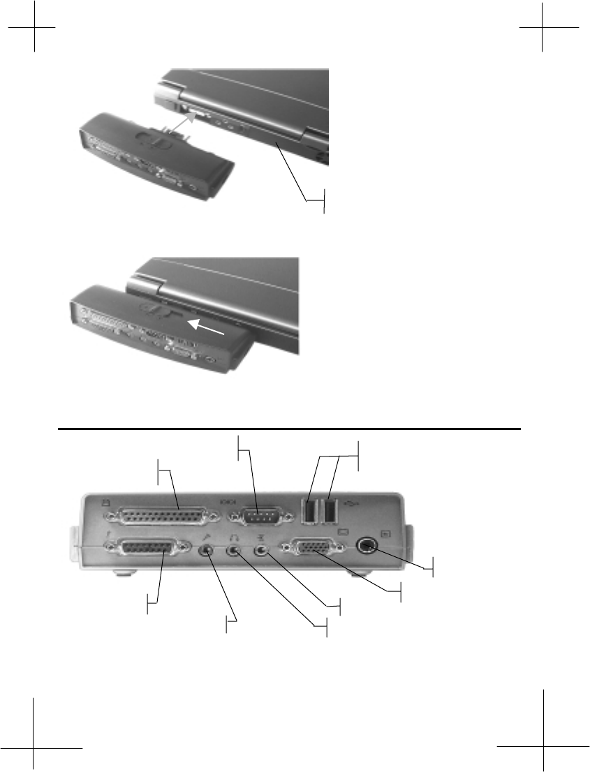 2. Connect the port replicator to the expansion connector which is located the rear side of
