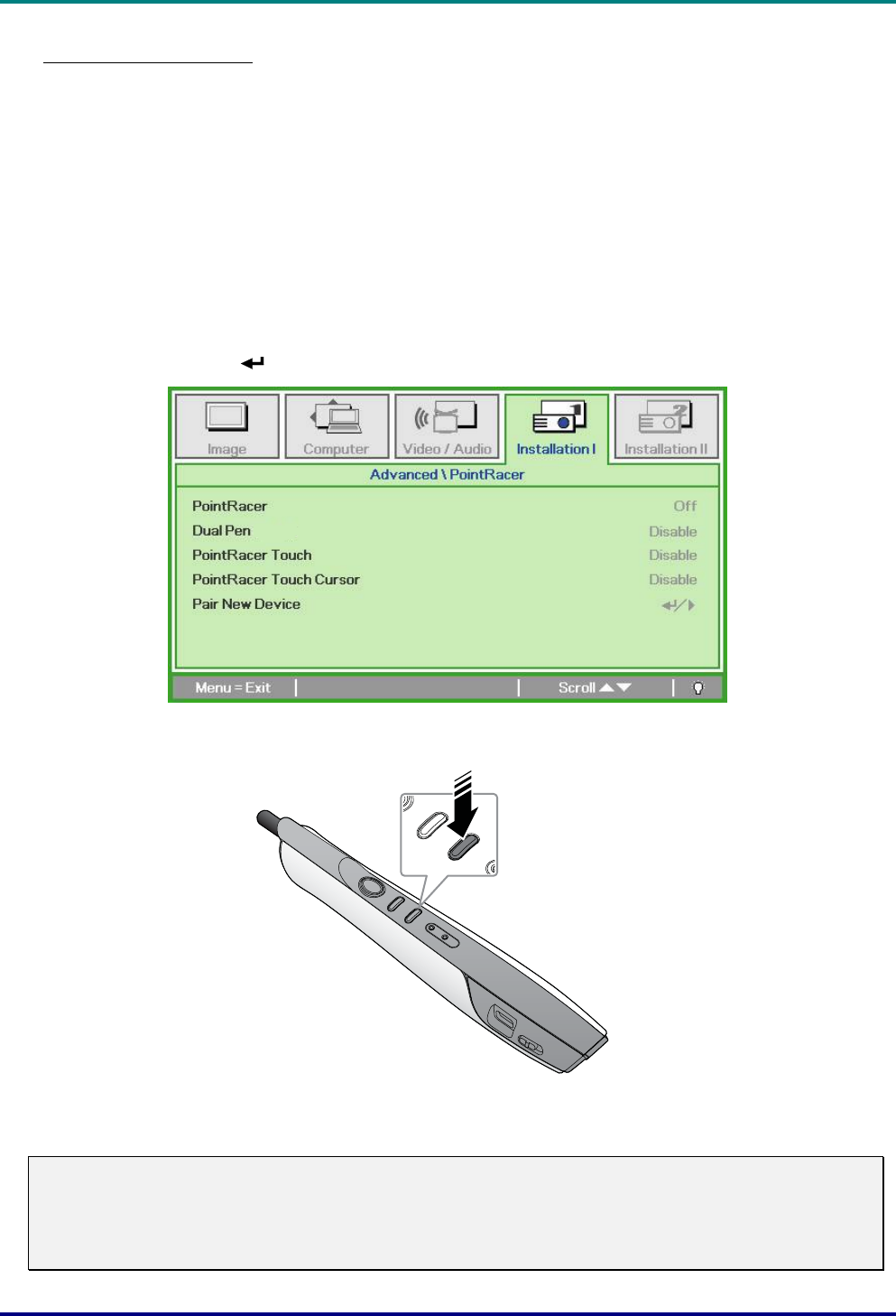 Push the PointRacer tip diagonally to the screen. To avoid interference, do not push the tip vertical-