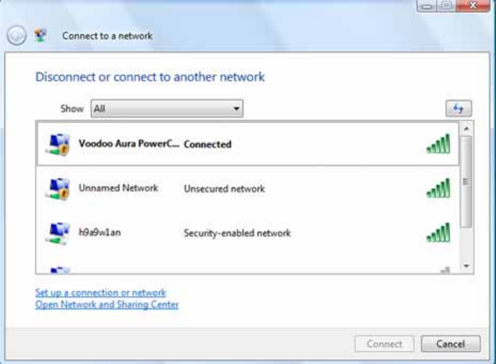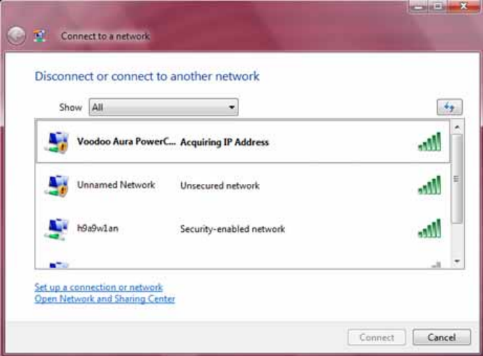 7. PAW receives the active request from Envy Notebook with “Voodoo Aura PowerConnect” network name.