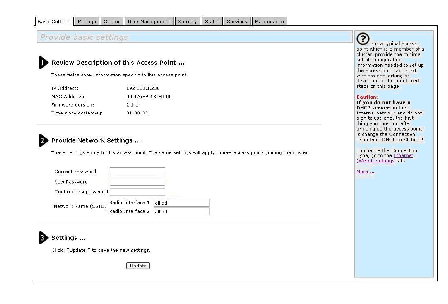 software web pages using the Access Point IP address, for example http://192.168.1.230/ if the