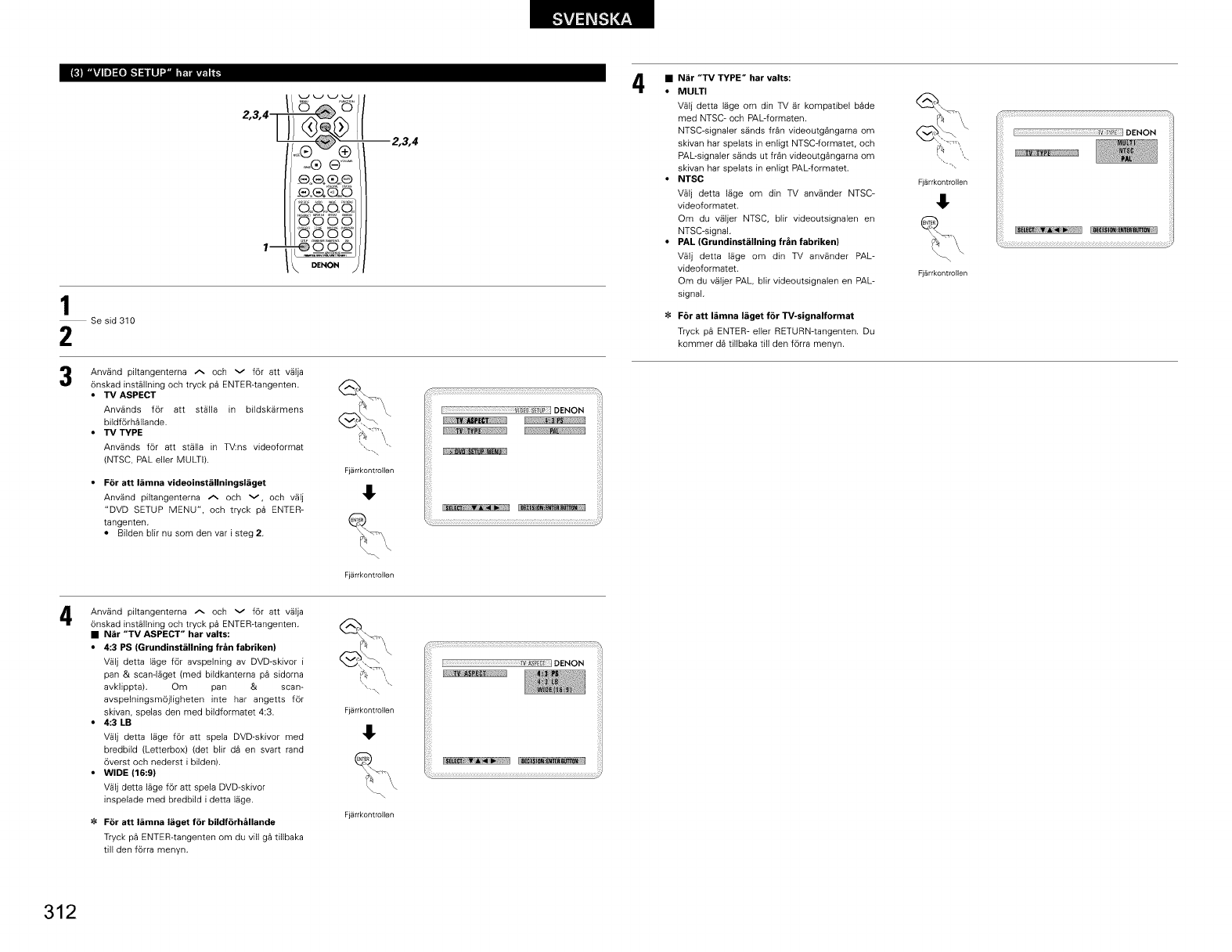 Bilden visas inte med • St_ll in "TV ASPECT" rgtt f6r den typ av bildsk_rm apparaten hat anslutits till 312