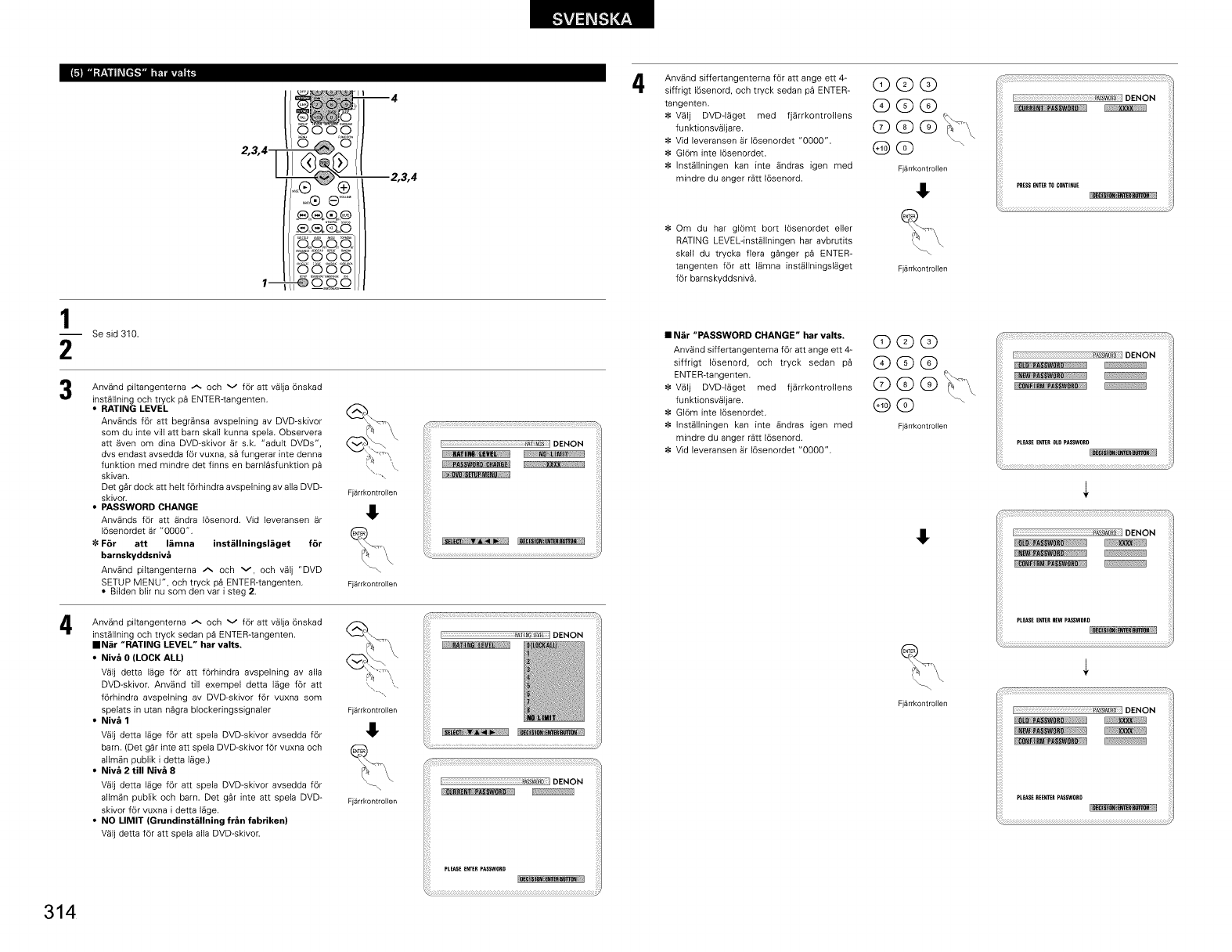 Avspelningen startar inte n_r en titel • Kontrollera inst_llningen under "RATINGS SETUP" 314