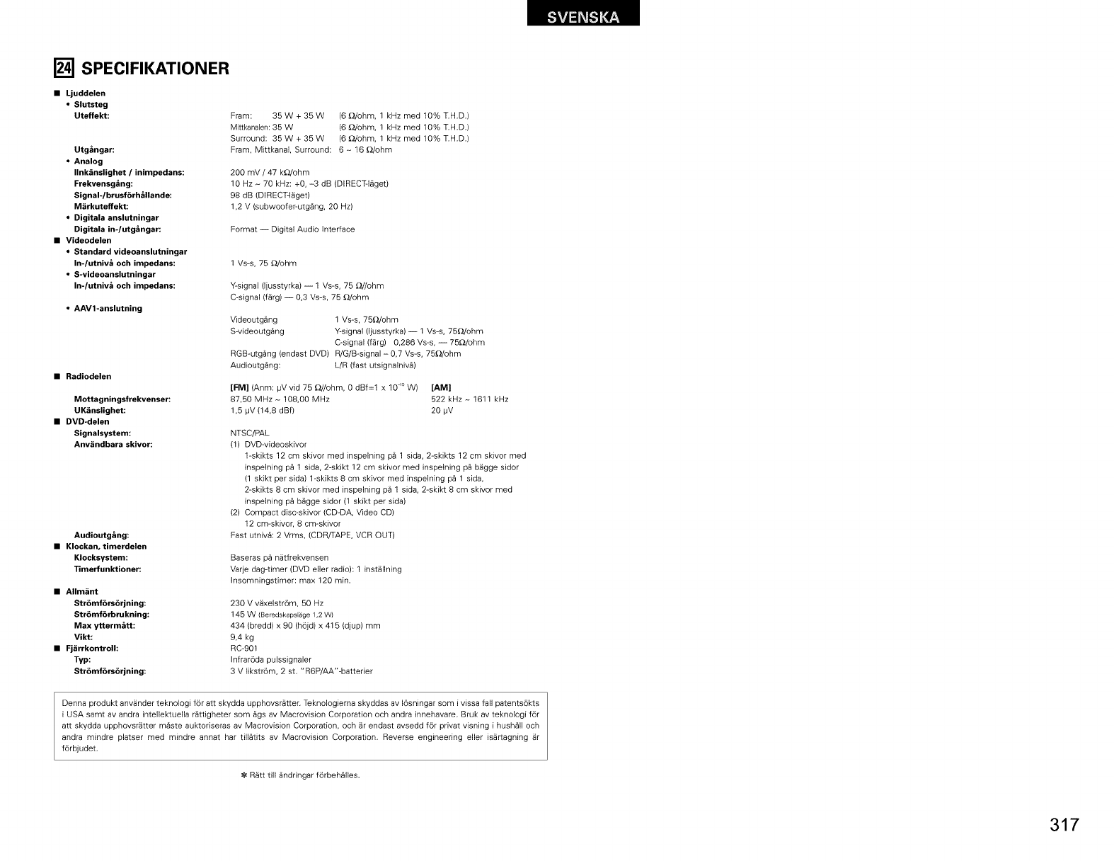 i USA samt av andra intellektuella rSttigheter som 8gs av Macrovision Corporation och andra innehavare, Bruk av teknologi f6r