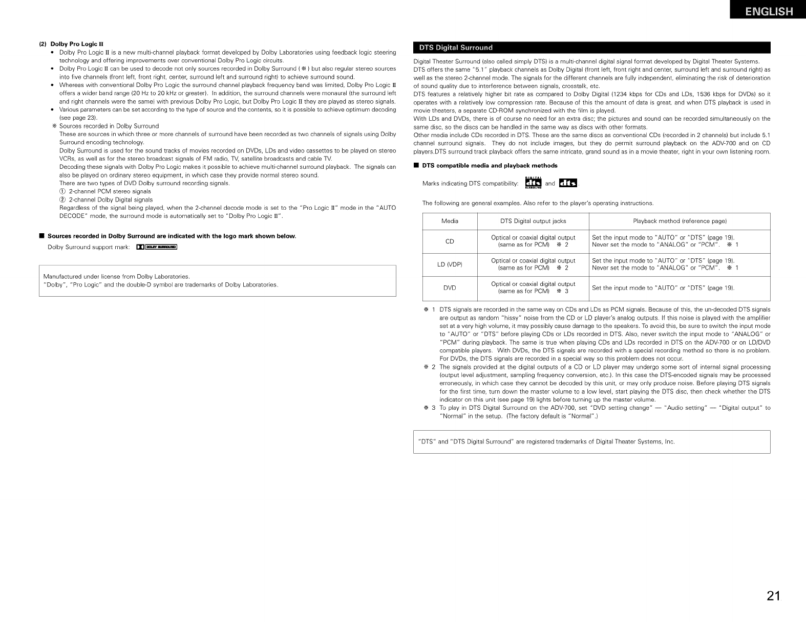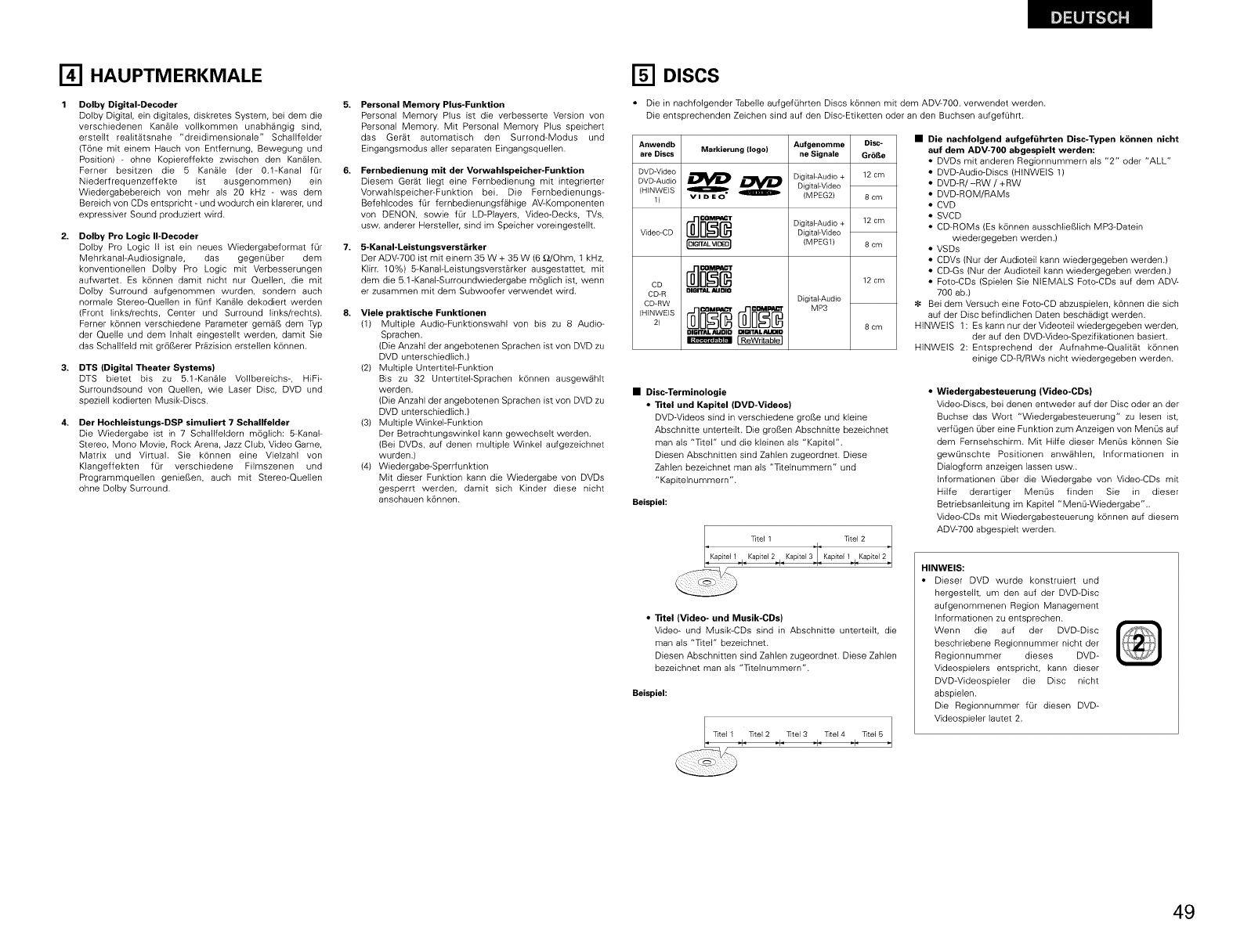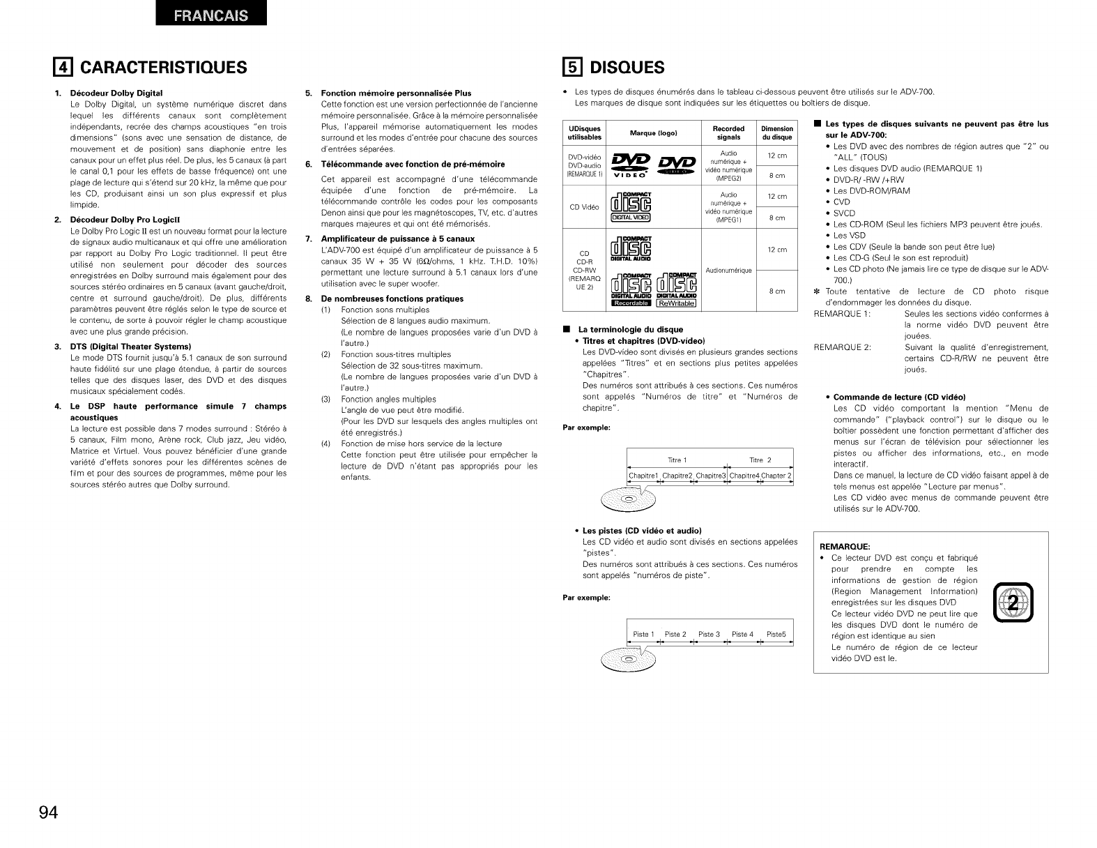 Denon ADV 700 User Manual RECEIVER Manuals And Guides L0201013