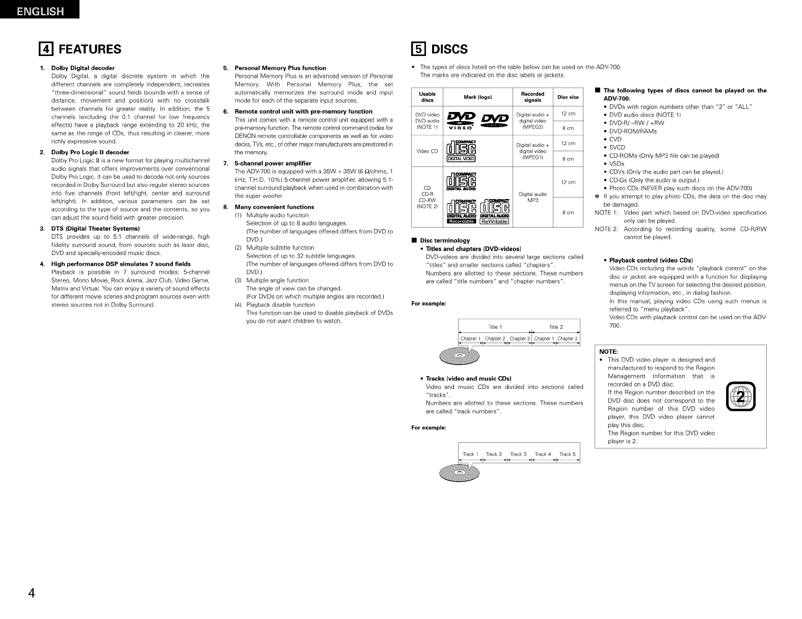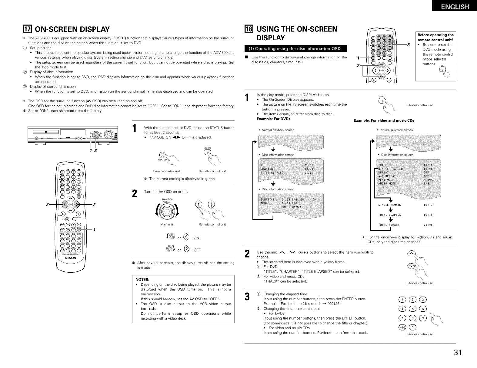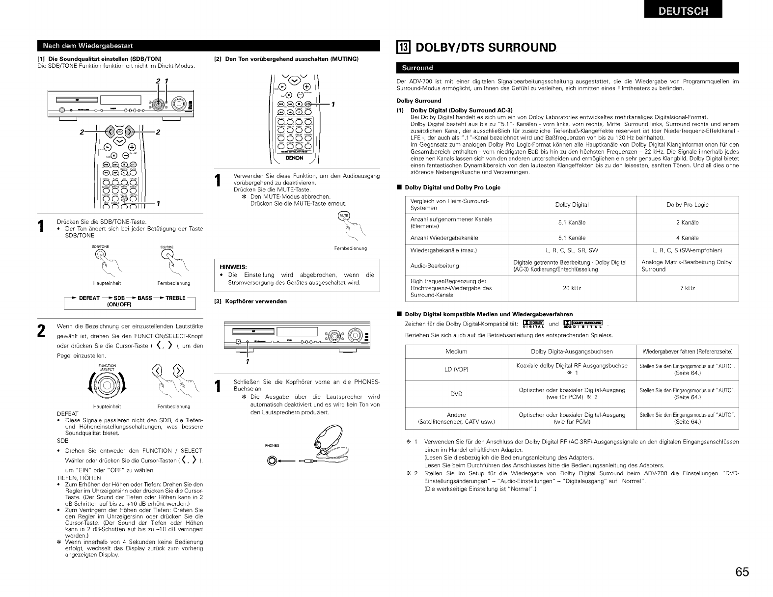 Denon ADV 700 User Manual RECEIVER Manuals And Guides L0201013