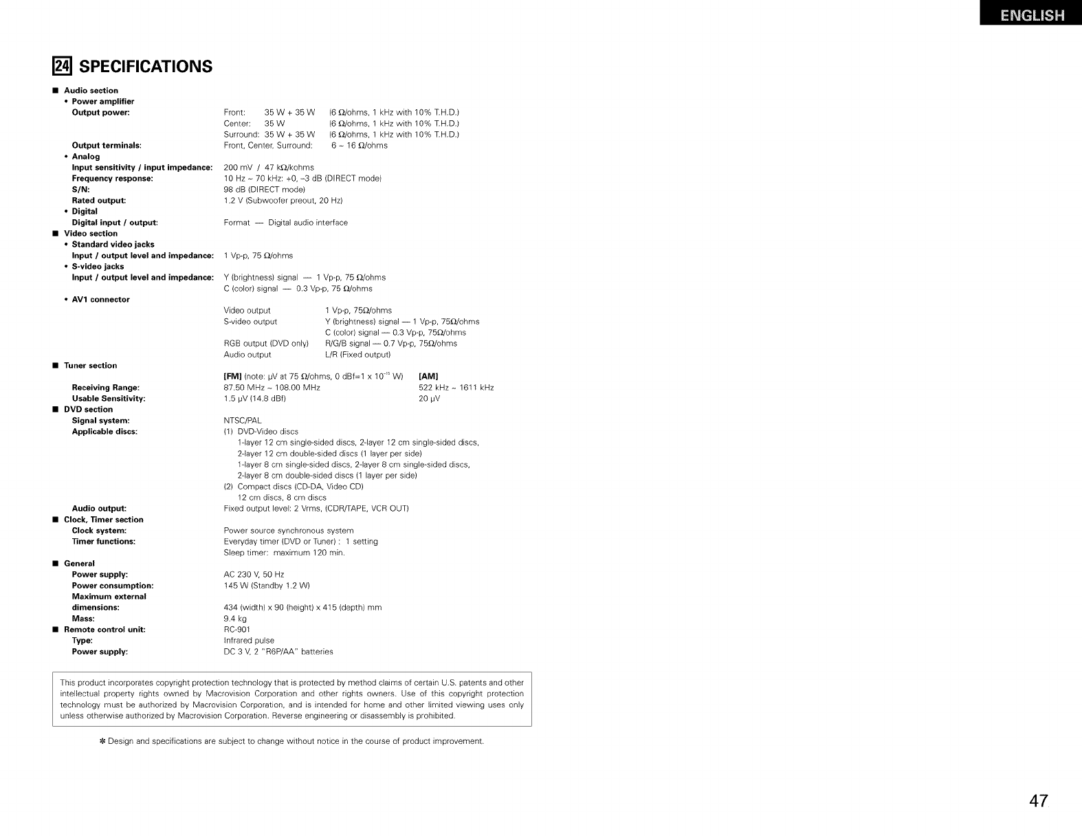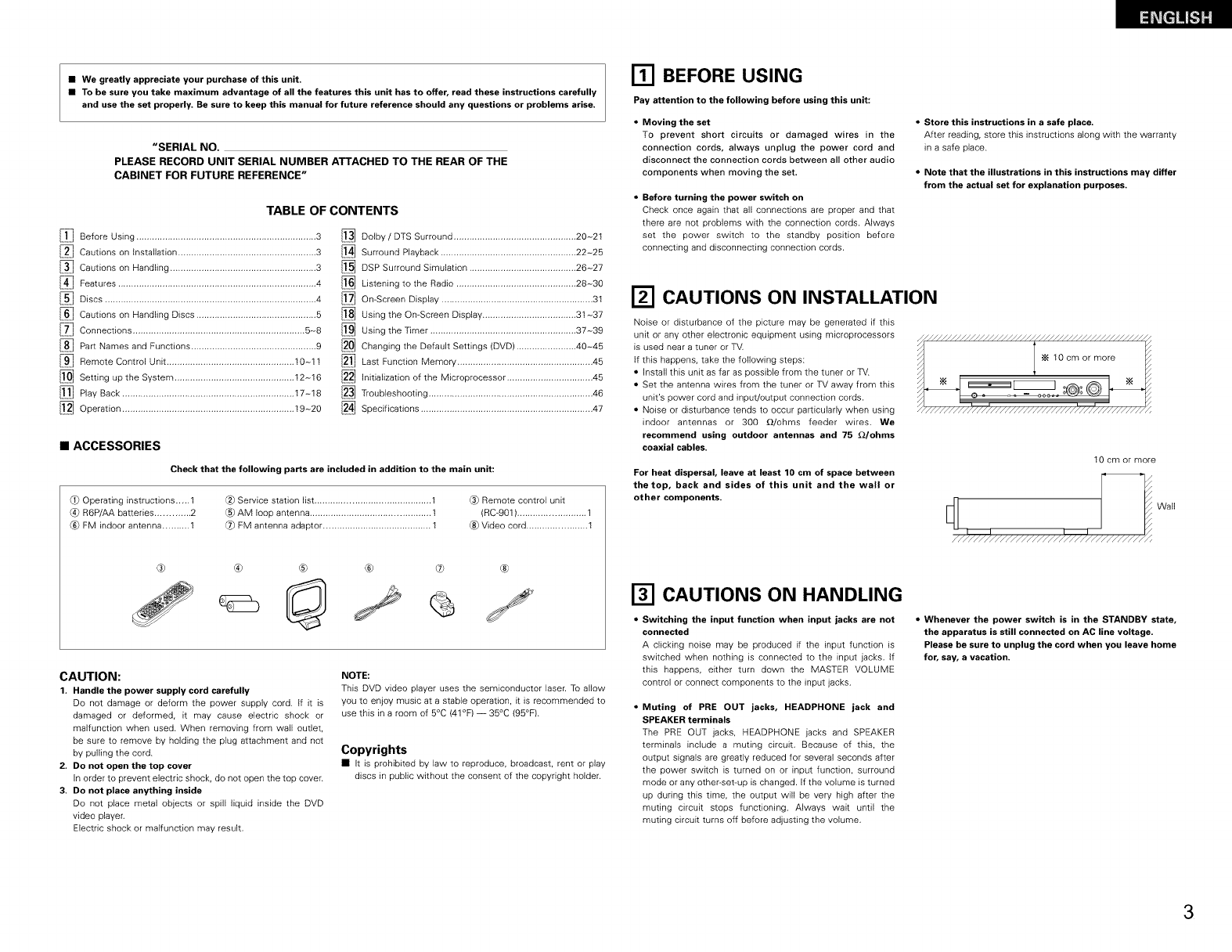DENON Receivers Manual L0201013 DENON Receivers Owner's Manual, DENON Receivers installation guides