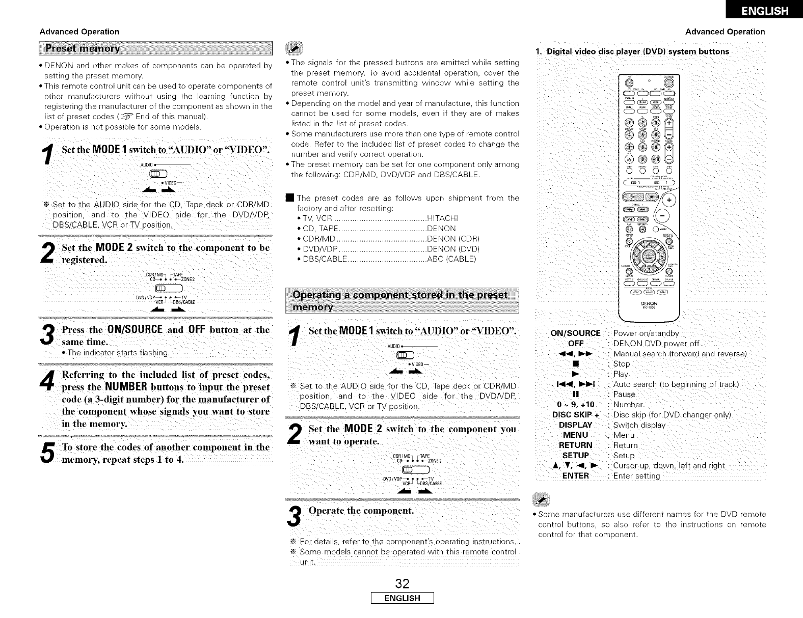 DVD preset codes