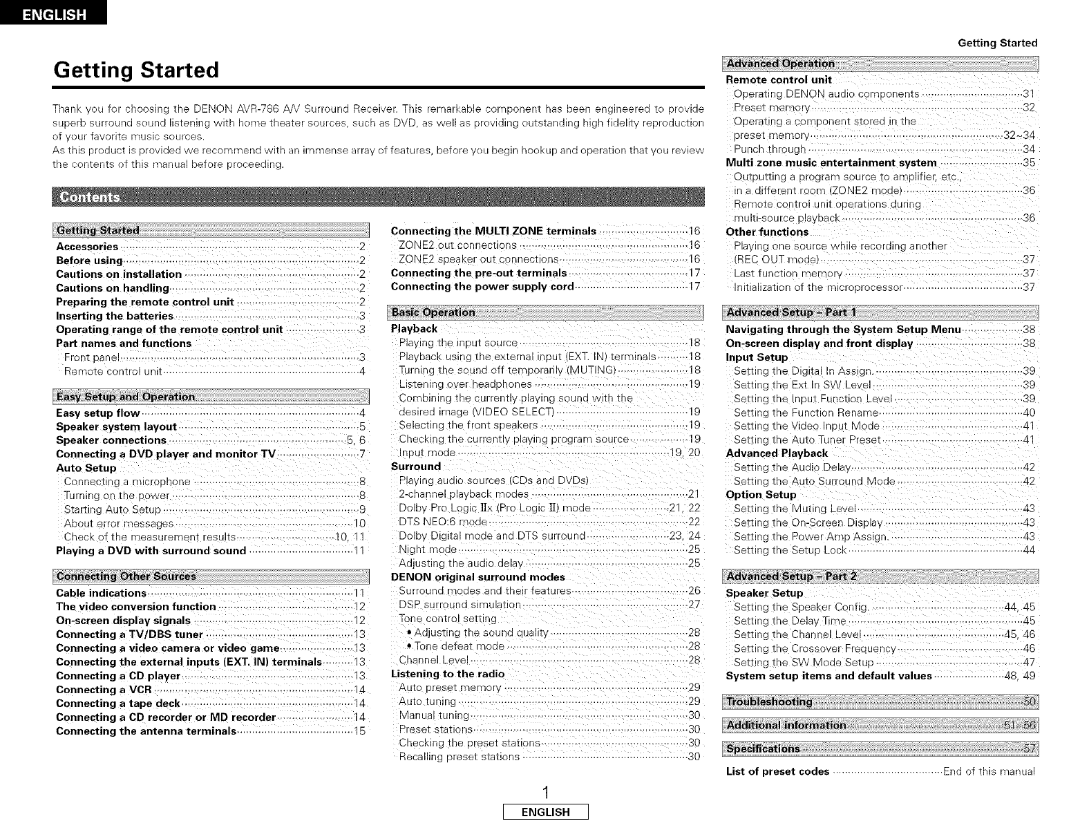 Denon AVR 786 User Manual AV RECEIVER Manuals And Guides L0512087