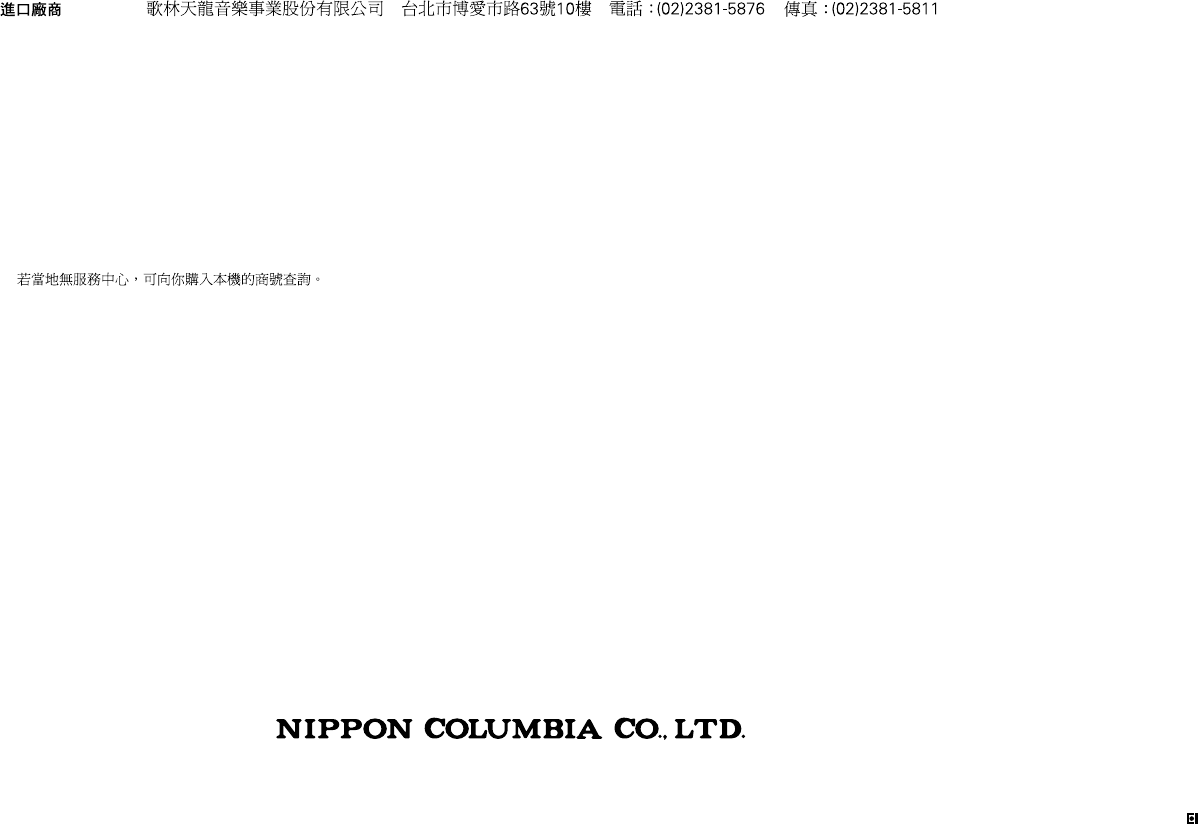 Taiwan R.O.C. KOLIN-DENON ENTERTAINEMENTY INC. 5th FL.,NO.63, Po-Ai Road, Taipei, Taiwan, R.O.C.
