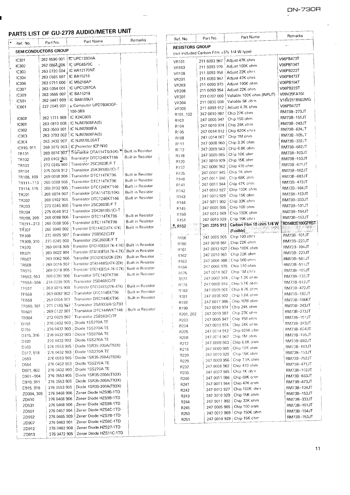 PARTS LIST OF 3U-2584 AUDIO METER UNIT .............................................................................................. 11-13