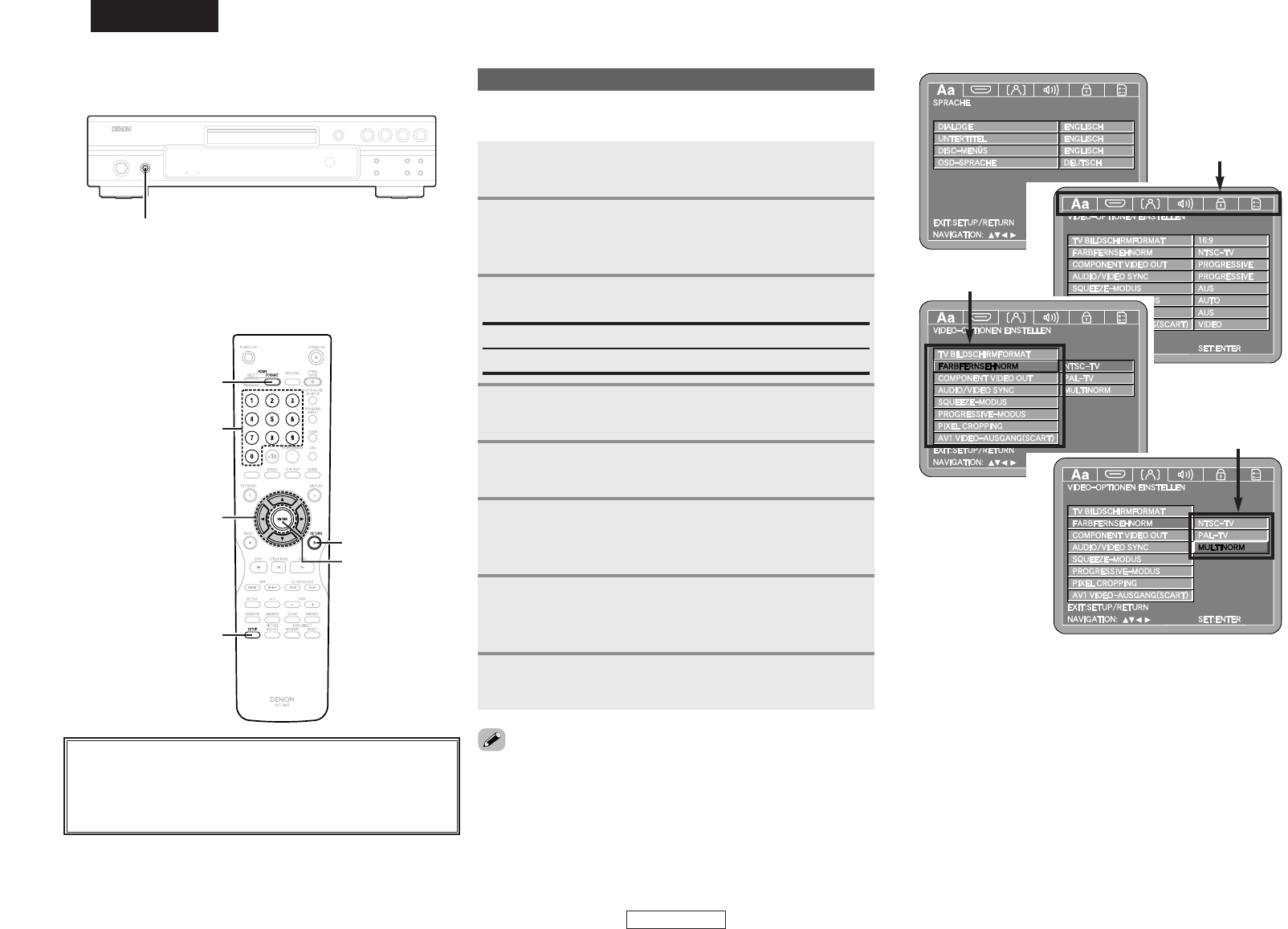 angeschlossenen Monitor-Gerätes mit dem Eingangsformat des DVD-