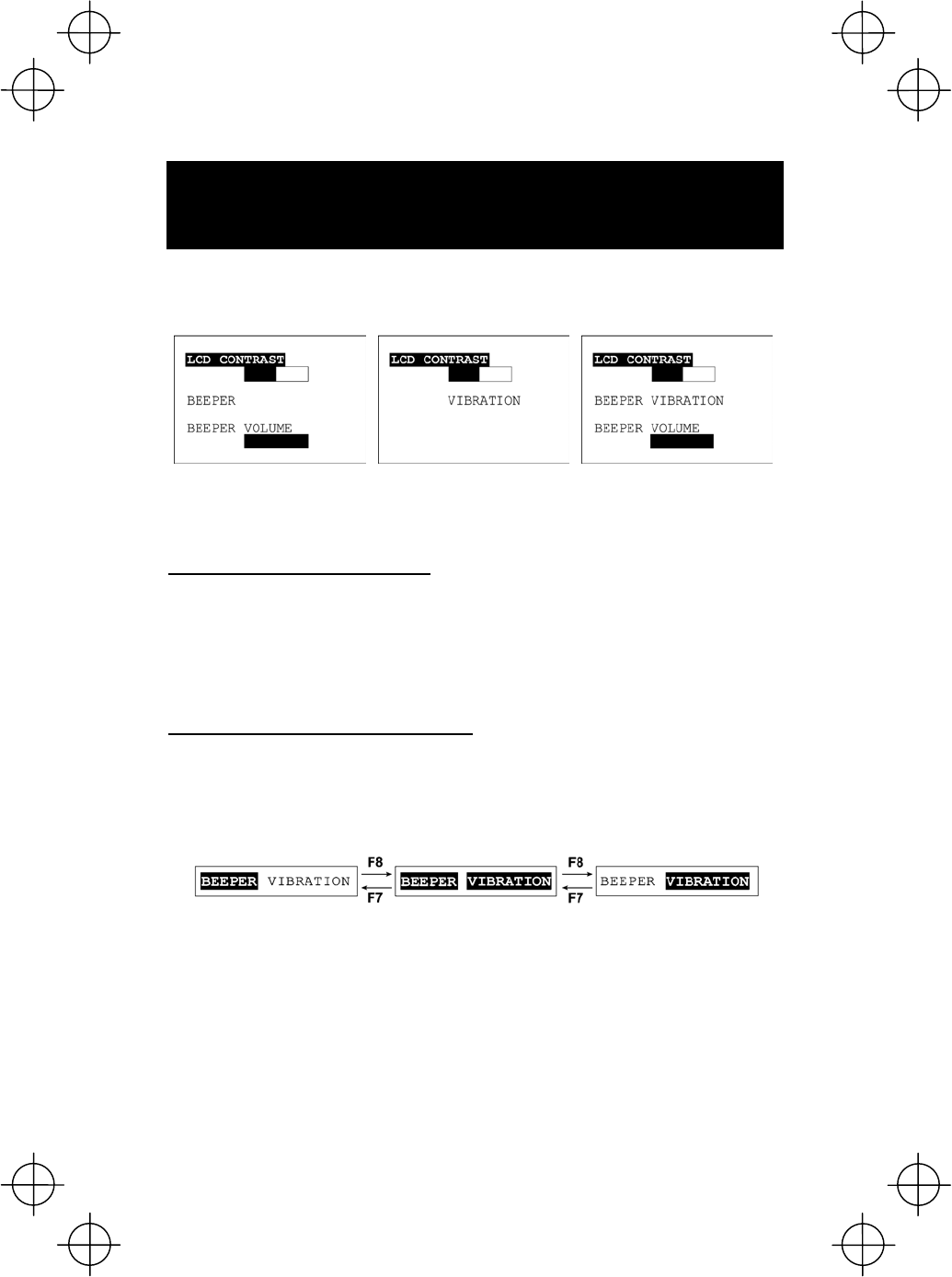 Adjusting the LCD Contrast & Beeper Volume and Switching the Beeper & Vibrator..............16