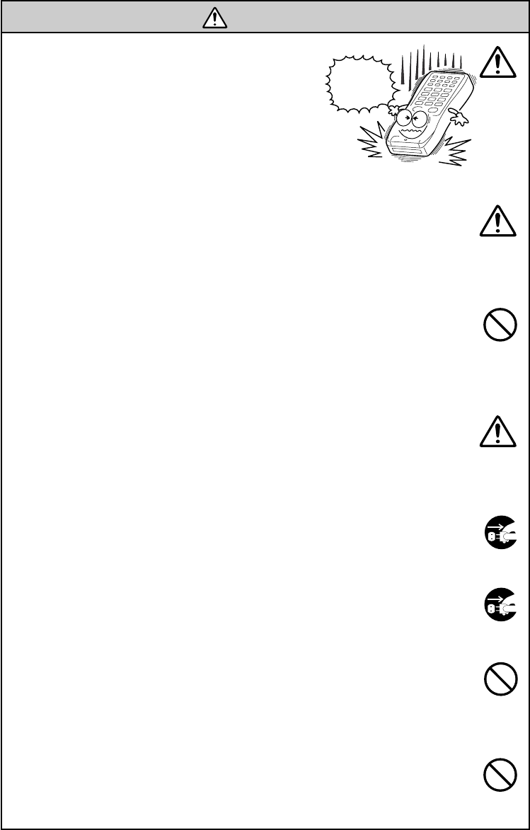 A triangle ( ) with a picture inside alerts you to a warning of danger. Here
