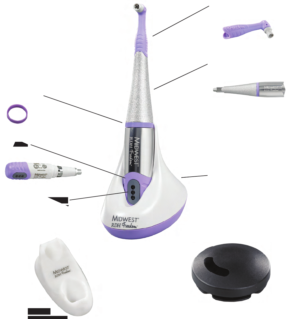 All components of the Midwest RDH Freedom Cordless Prophy System, except the Disposable Prophy Angle, which