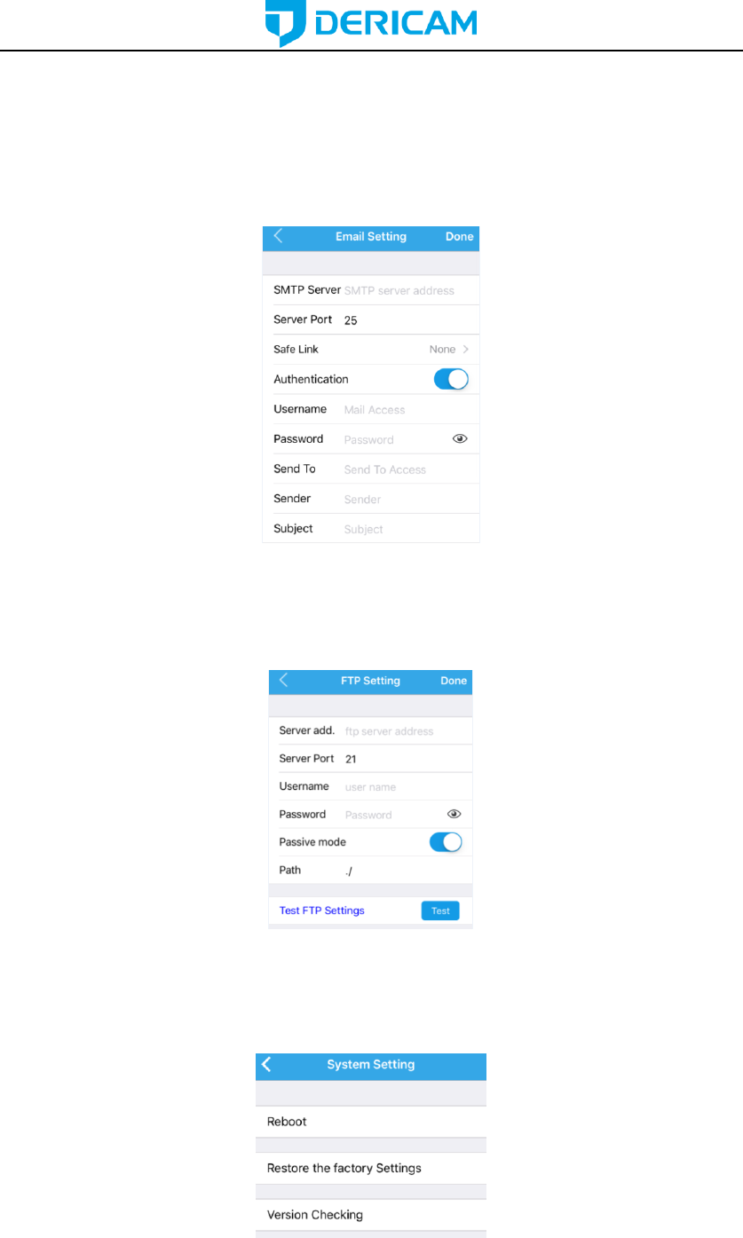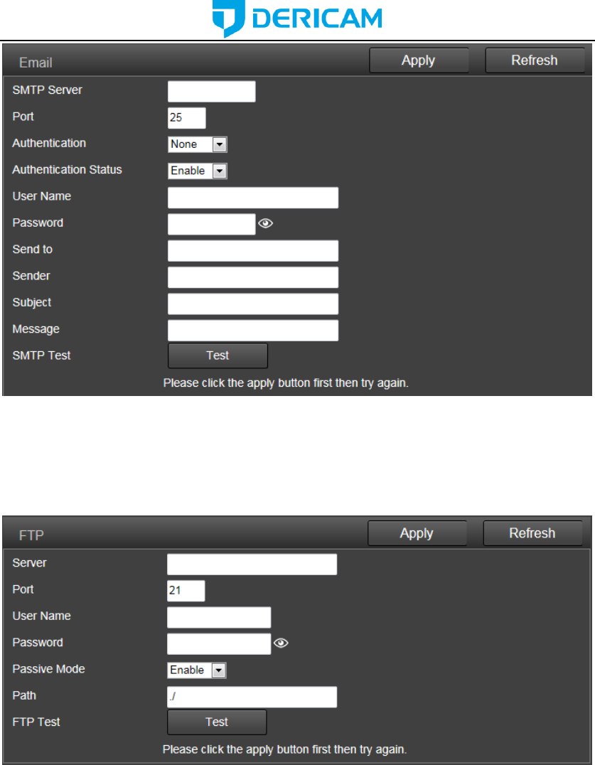 Here you can set the FTP server configurations for your FTP storage for picture or video.