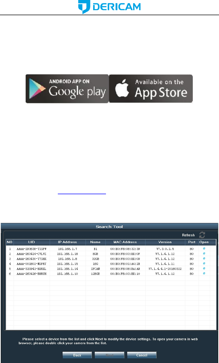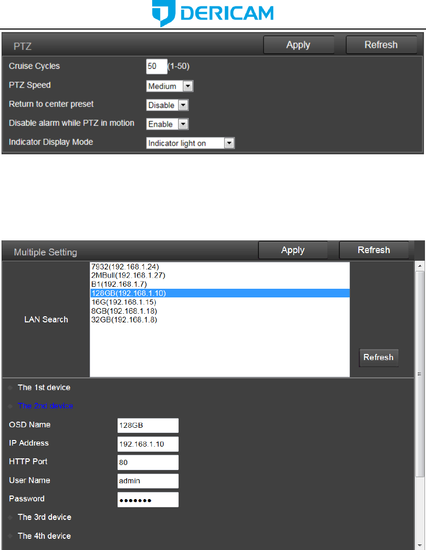 Here you can search the Dericam cameras in your LAN and add them into your multiple
