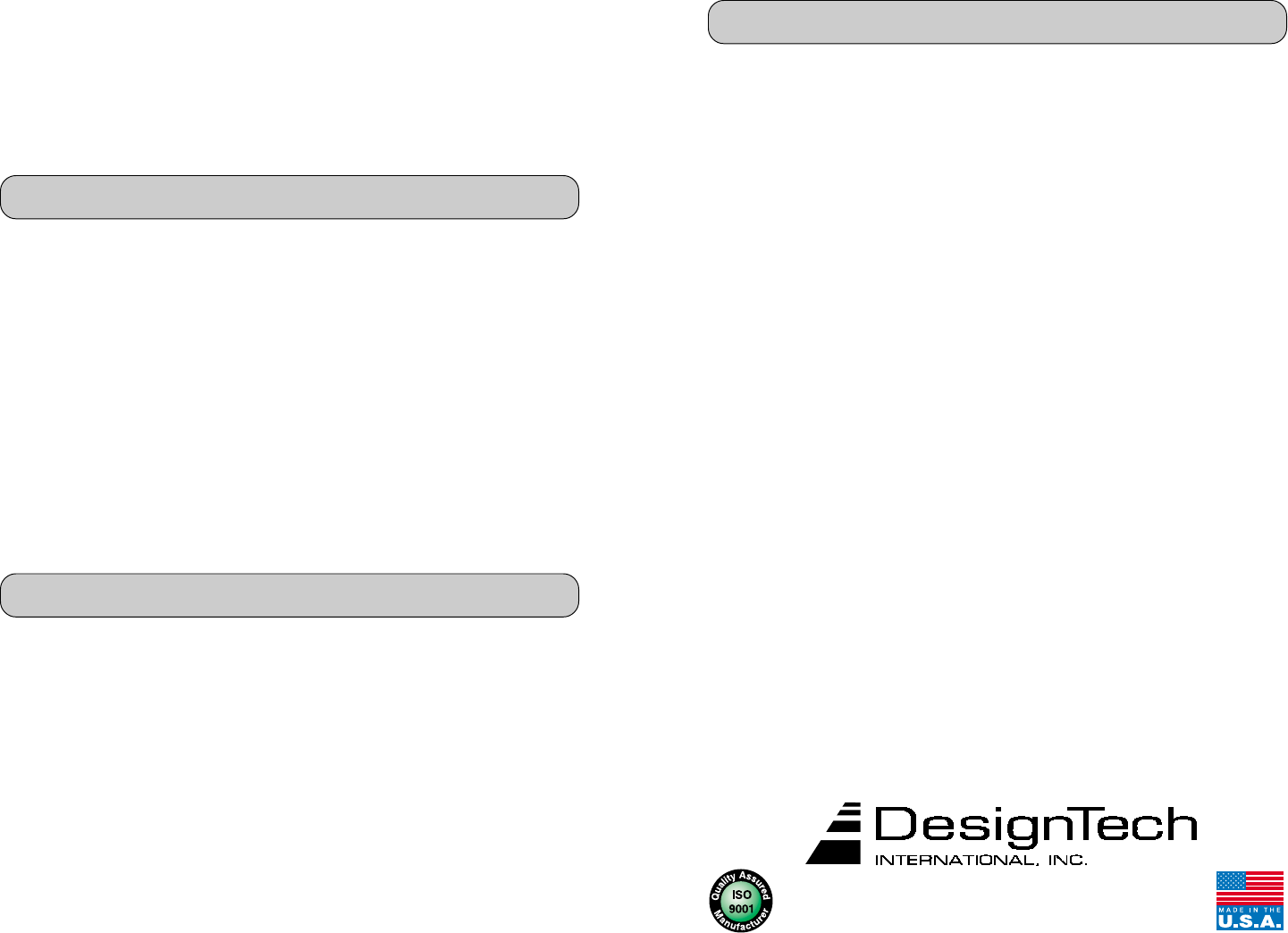 able repair or replacement charges if the product is returned prepaid to DesignTech Interna-
