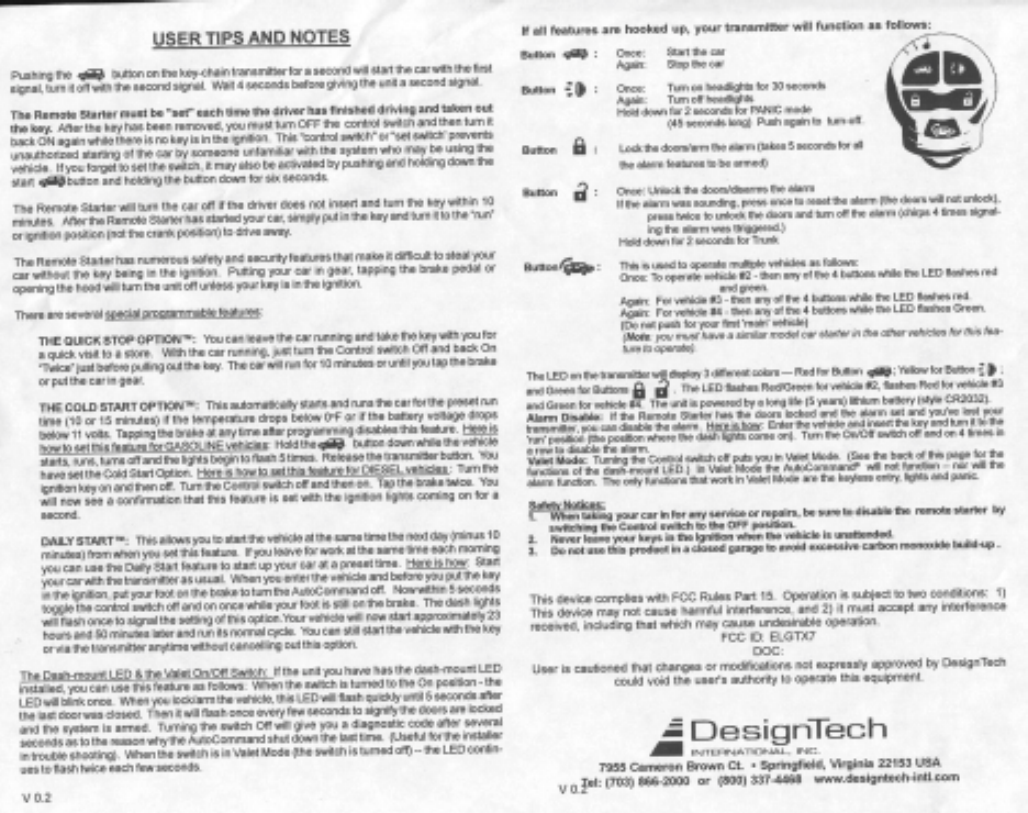 DesignTech TX7 R/C Security Transmitter User Manual users manual