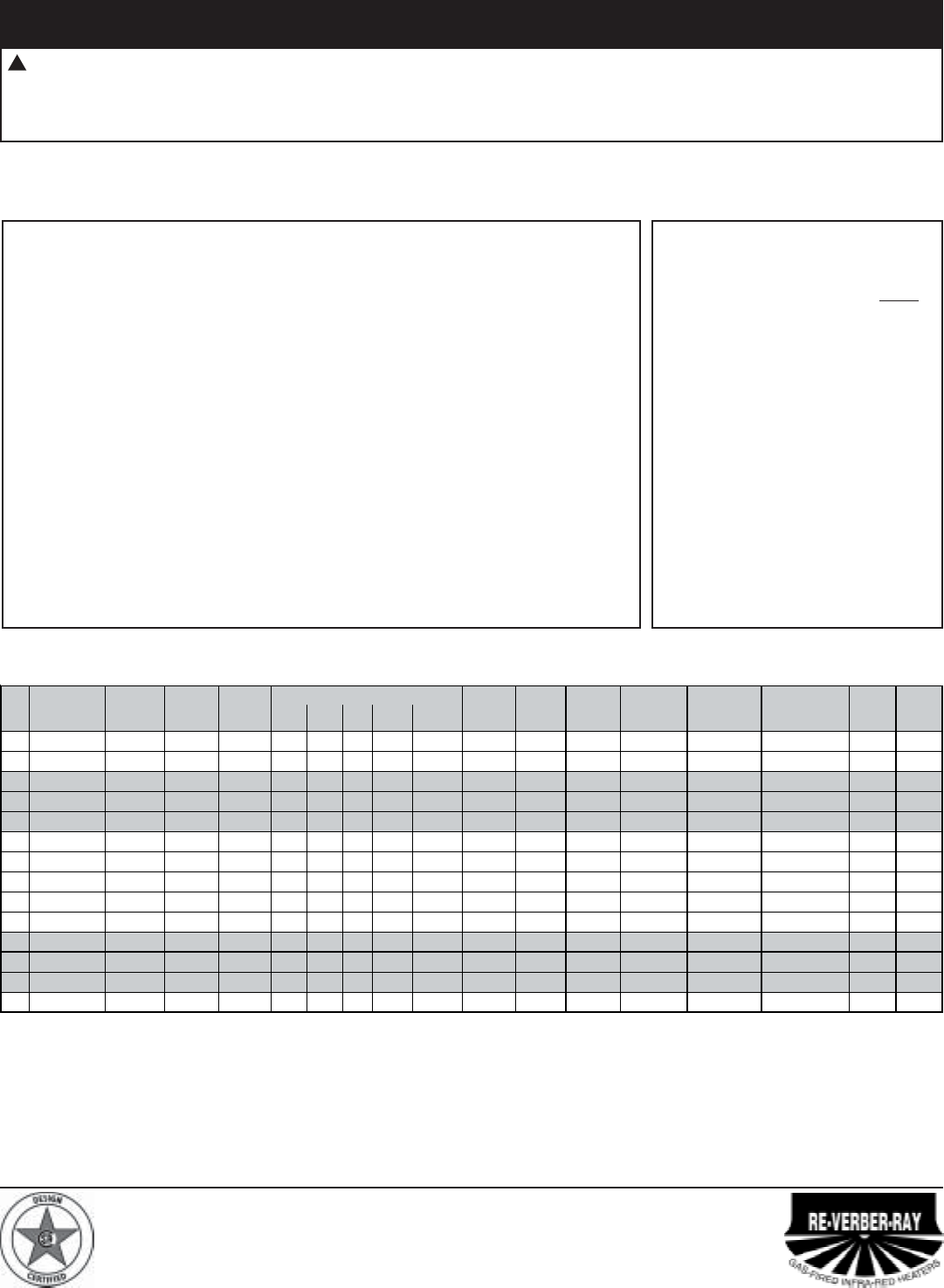 WARNING: This heater must be installed and serviced by trained gas installation and service personnel only!