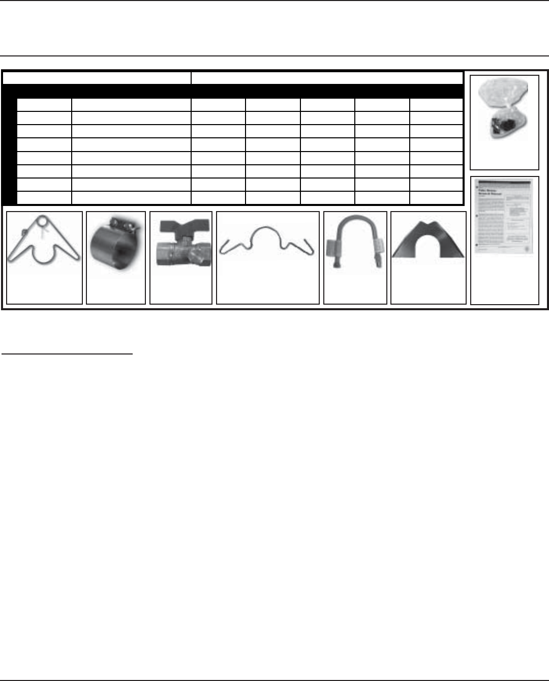Kit contents for the AG2 Series are shown below. Reference the proper column for your particular models length.